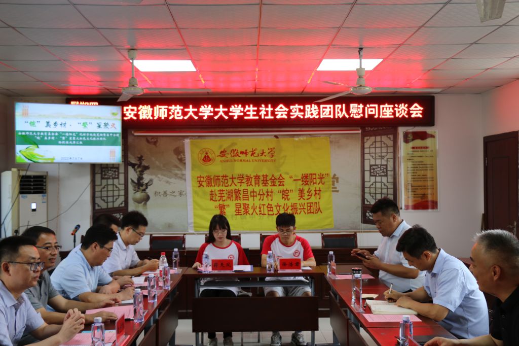 暑期社会实践团队同学们在中分村弘扬红色文化、开展防返贫监测摸排、绘制中分村红色旅游路线卫星云图、制作中分革命故事特色画集和旅游明信片等工作。陈骁寄语同学们要认识到中国是红色的中国,红色是中国的底色,通过社会实践,充分利用好红色革命资源讲好中国故事,助力乡村振兴发展。汪俊武表达了对繁昌区、孙村镇、中分村三级党委政府关心支持学院社会实践学生的感谢,希望进一步充分发挥校地合作优势,推动合作共赢,助力同学们在实践中受教育、长才干、做贡献、展风采。