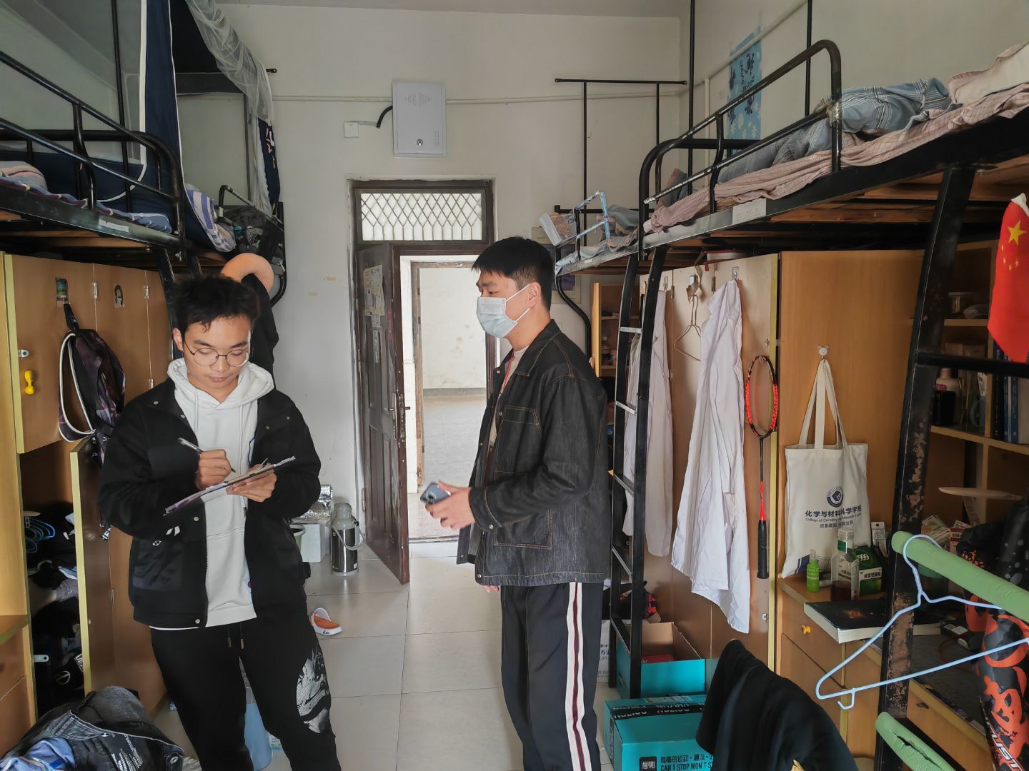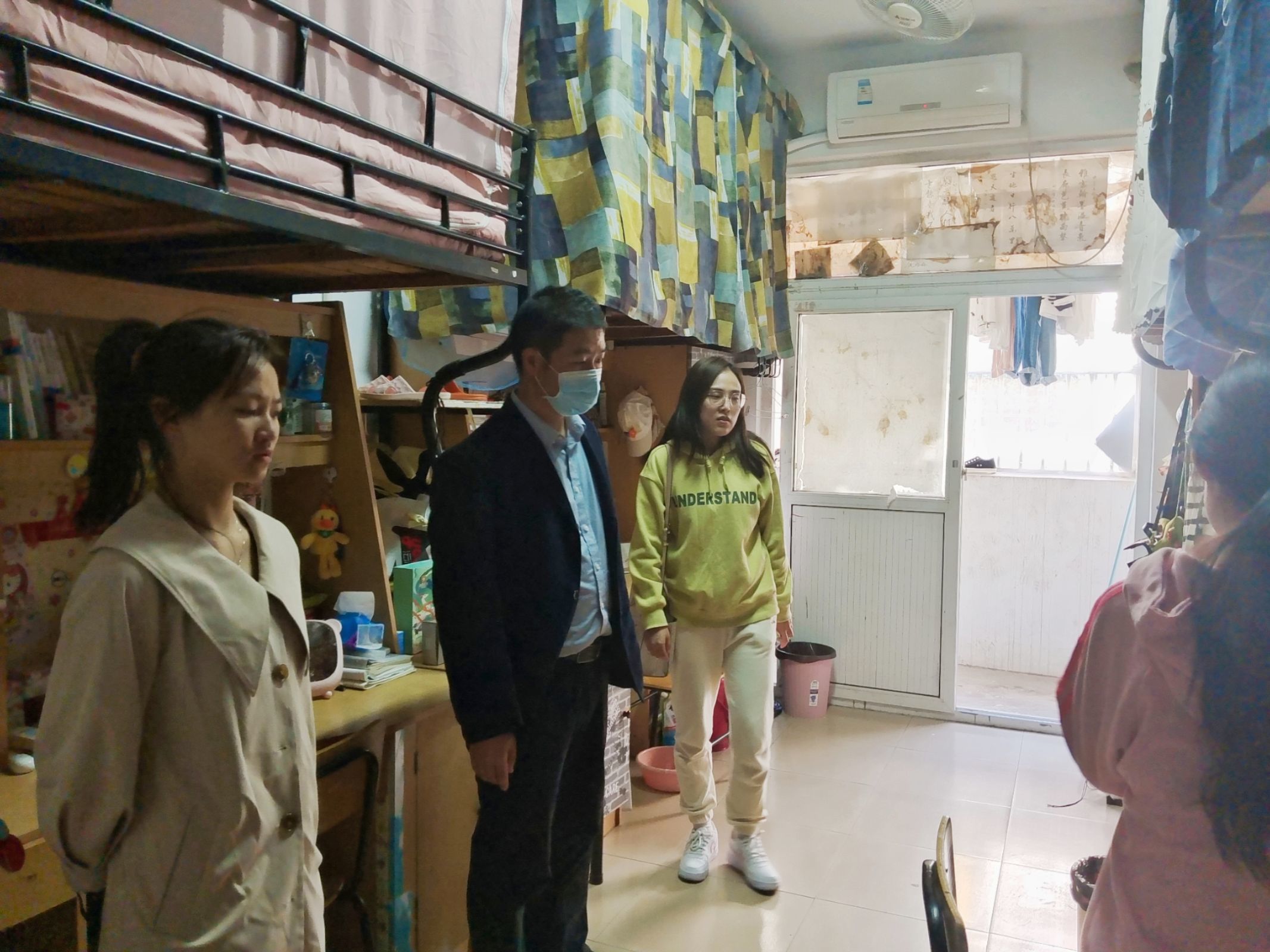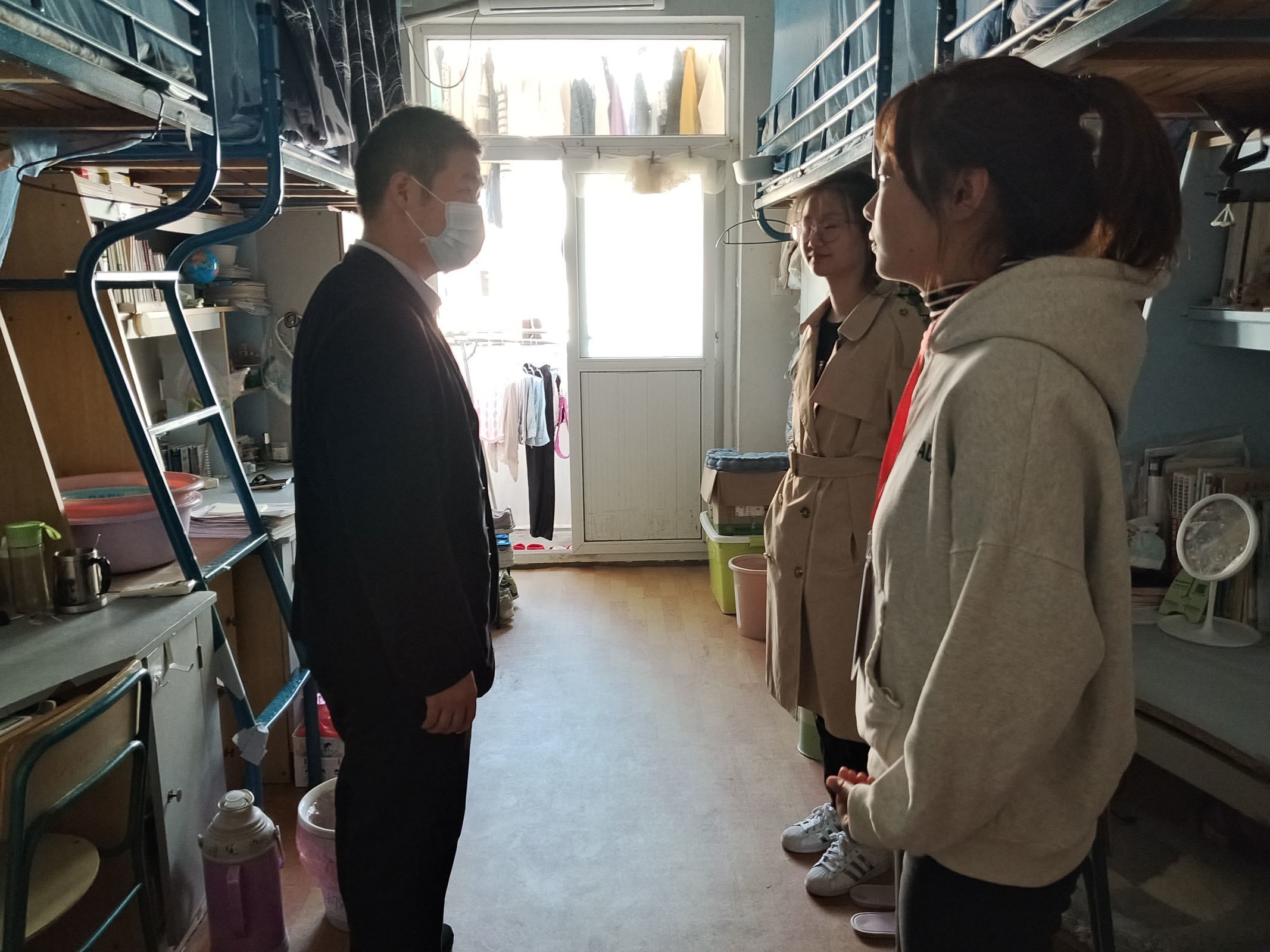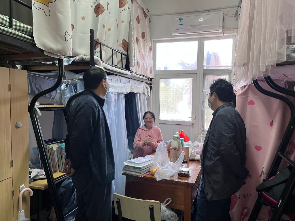 在走访检查过程中,学院领导、辅导员们就同学们近期学习问题、思想问题、生活问题等与同学们进行亲切交流,鼓励同学们走出宿舍,走向图书馆,走向体育场,注意加强体育锻炼,增强身体素质;针对考试周要注意合理安排时间、认真复习,查漏补缺,做好期中考试迎考准备;对正处于考研冲刺期的毕业班同学,老师们在走访过程中重点也对他们进行了慰问,叮嘱他们要劳逸结合并祝愿他们考出理想的成绩。
