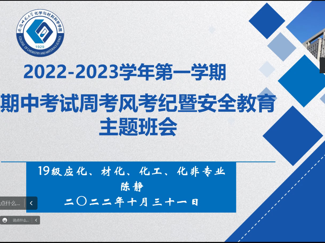 此前,辅导员老师们还通过线上线下班会对期中考试考风考纪和秋冬季安全管理进行教育,对思想情况调研在班级和专业中进行调研摸底。
