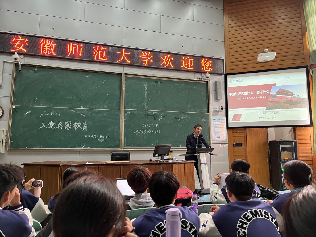 李古州带领同学们回顾了中国共产党的历史,高度概括了101年来中国共产党取得的伟大历史成就,介绍了如何撰写入党申请书及入党流程。他结合学习党的二十大精神,教育广大青年要有理想、立大志,把握人生方向,不断增强对马克思主义、共产主义的信仰,增强对中国特色社会主义的信念,增强对实现中华民族伟大复兴的信心,用一生来践行跟党走的理想追求;要敢担当、明大德,始终保持健康向上的精神风貌,把奋斗作为青春最亮丽的底色;要能吃苦、成大才,抓住学习知识、增长本领的黄金时期,珍惜在校期间的学习时光,练就过硬本领;要肯奋斗、担大任,肩负历史使命,努力成长为德智体美劳全面发展的社会主义建设者和接班人,早日加入中国共产党。