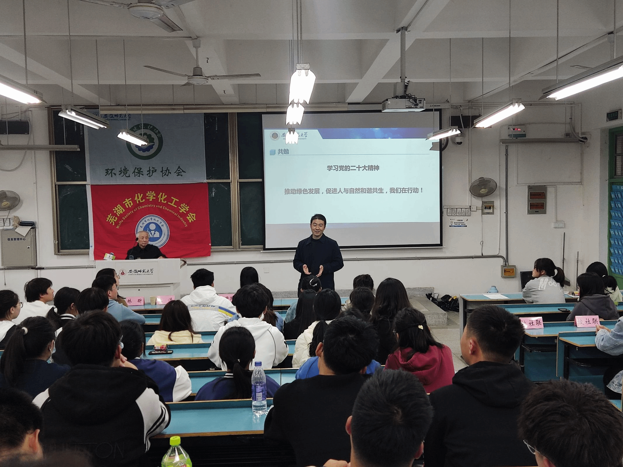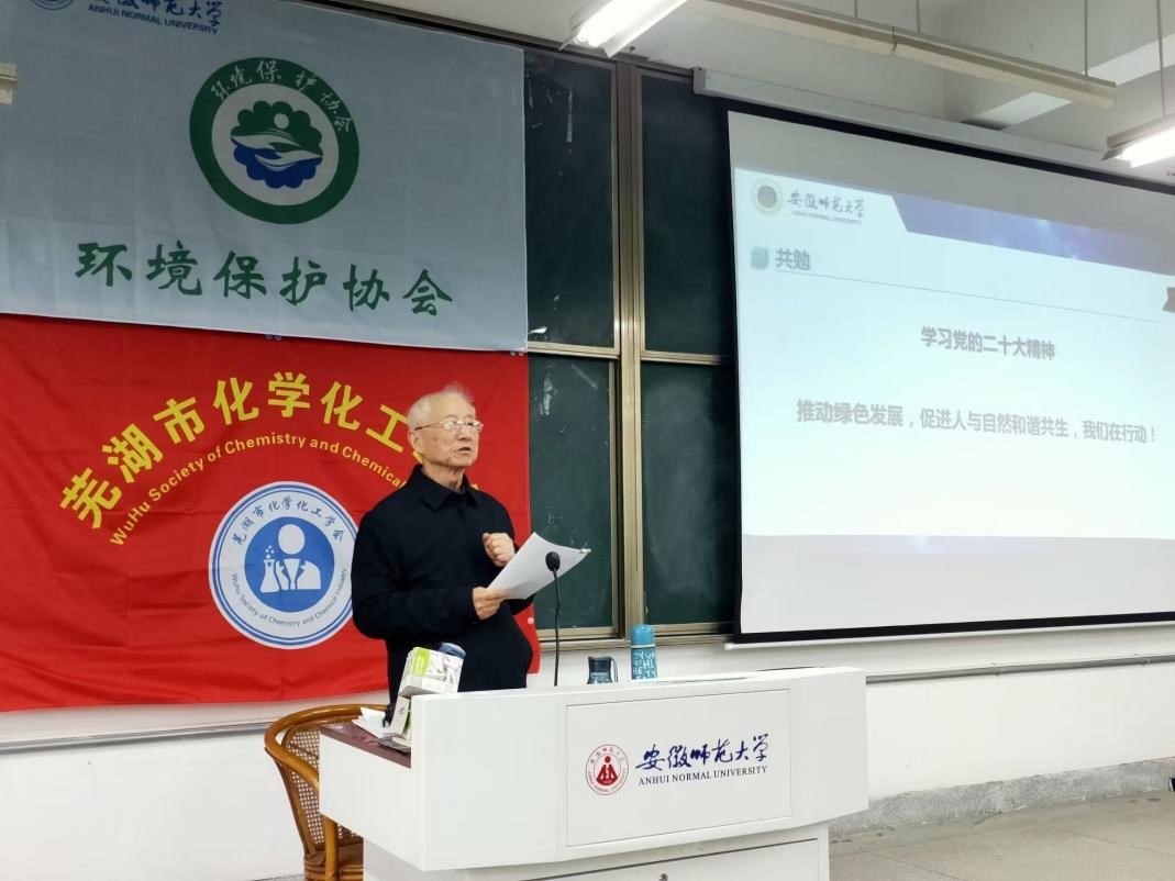 李古州在聆听专题报告后指出:党的二十大报告围绕生态文明建设提出了许多重要论断、重大部署、重大举措,擘画了新时代生态文明建设新蓝图。环境保护协会自1998年成立以来,一直贯彻环境保护的理念,感谢宫老师对化学化工学会和环境保护协会所作出的贡献。希望协会要深入践行习近平生态文明思想,认真学习党的二十大精神,组织开展好环境保护相关活动,打造优秀社团。