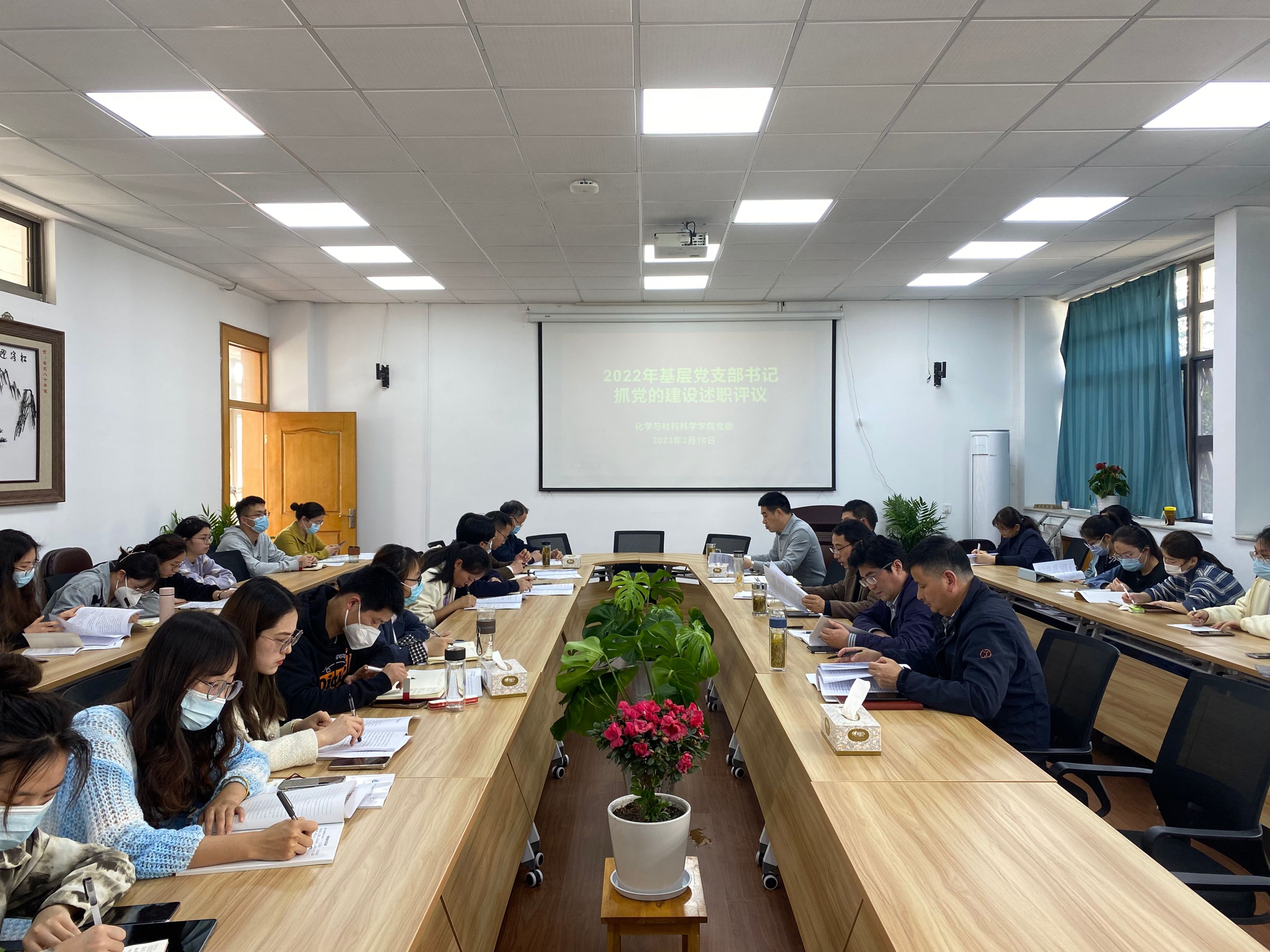 党委在学苑北楼9号楼205会议室召开2022年度党支部书记抓党的建设述职评议考核会。学院党委委员、全体党支部书记、支委及师生党员代表参加会议。会议由学院党委书记汪俊武主持。