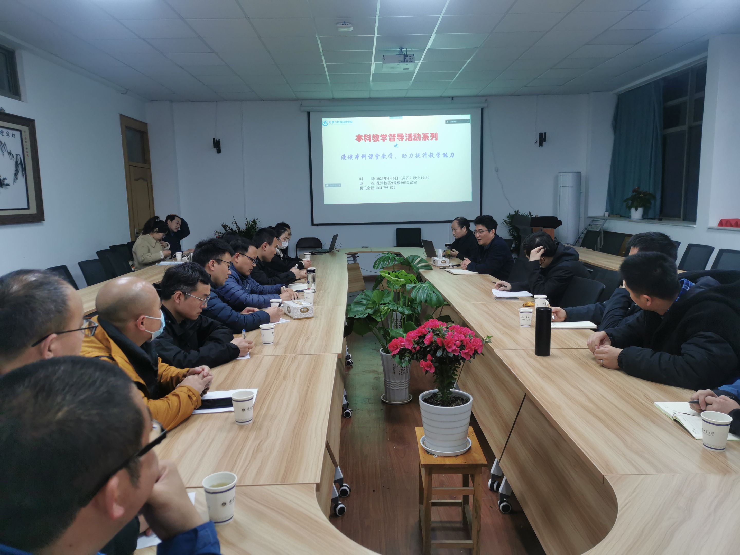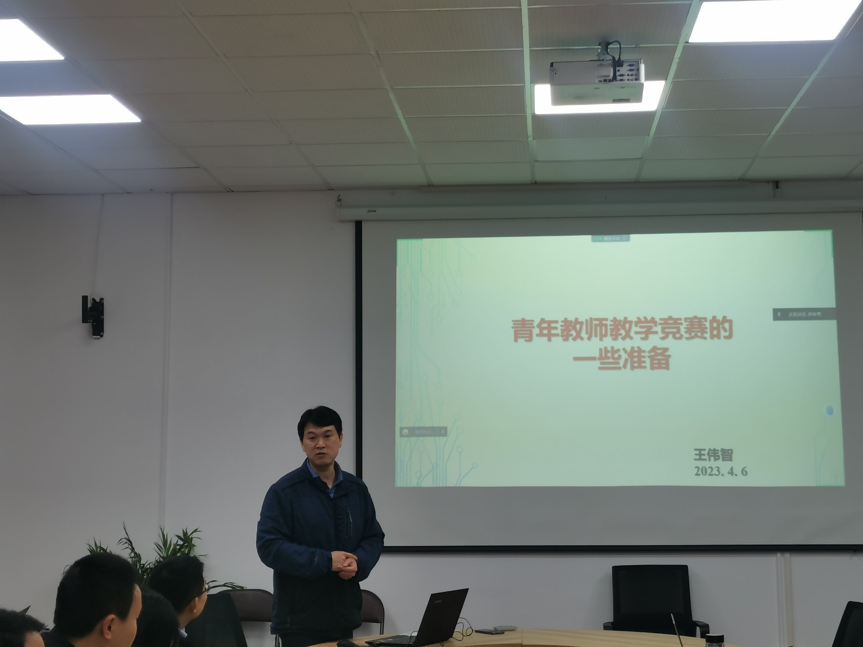 青年教师教学竞赛的内容和流程,并从教学内容选取、教学实施流程、教学设计原则等方向分享了自己参加课堂教学竞赛备赛的经验;学院教学督导组组长李茂国老师围绕本科课堂教学素材库建设及作业与命题进行了经验分享。他指出,教学竞赛和常规教学相辅相成,并从本科课堂教学素材库建设、本科课堂教学作业布置、本科课堂教学考核命题三个方面为与会老师做了详细介绍。会后,与会老师针对教学过程中的一些问题进行了充分交流研讨。