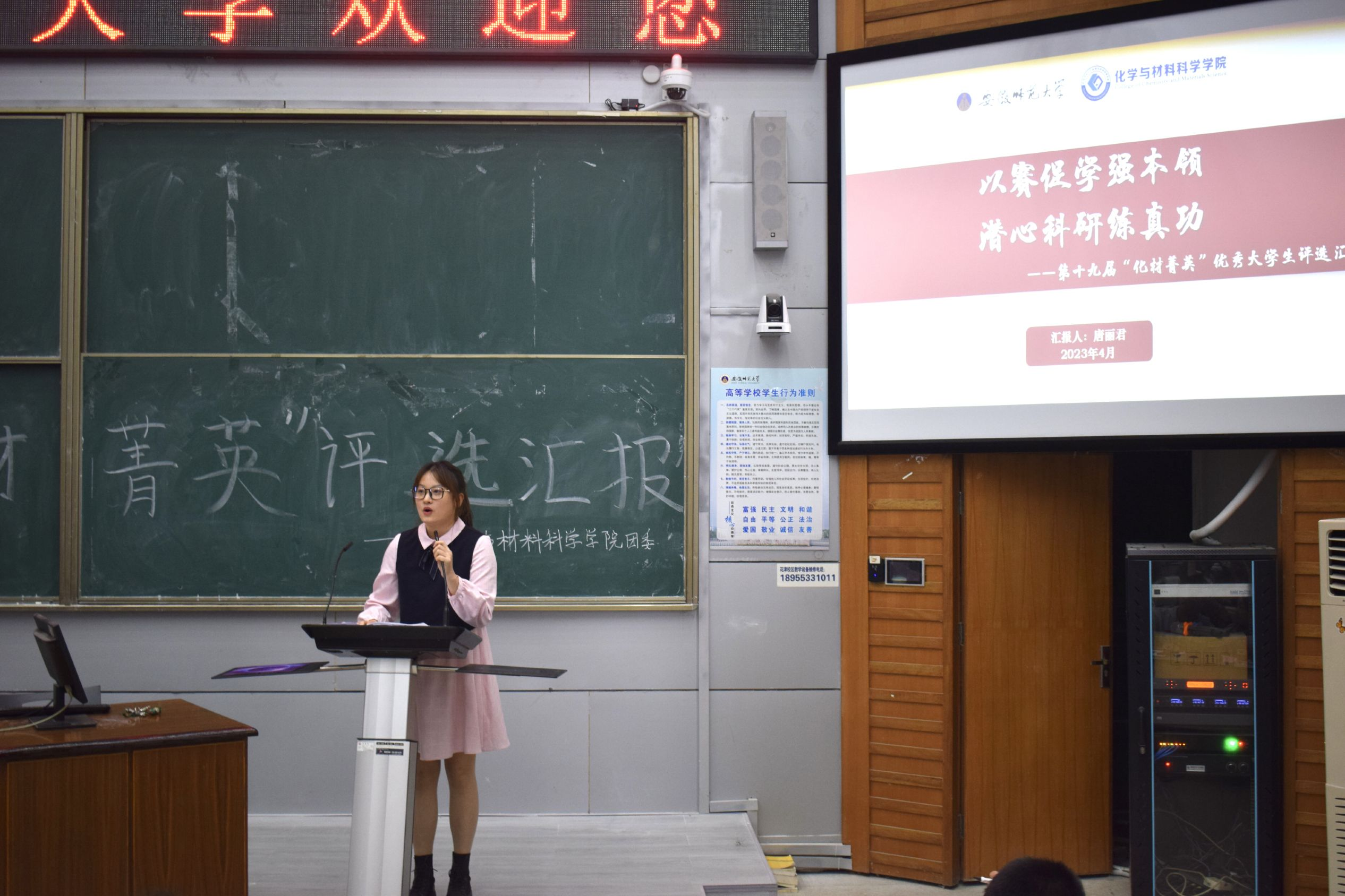 于4月12日晚在教学楼2010105教室举办第19届“化材菁英”优秀大学生评选活动。学院党委副书记李古州、材化系主任黄玉成、化工系主任周映华、化学系主任陈郑、全体专兼职辅导员以及各年级学生代表参加评选活动。