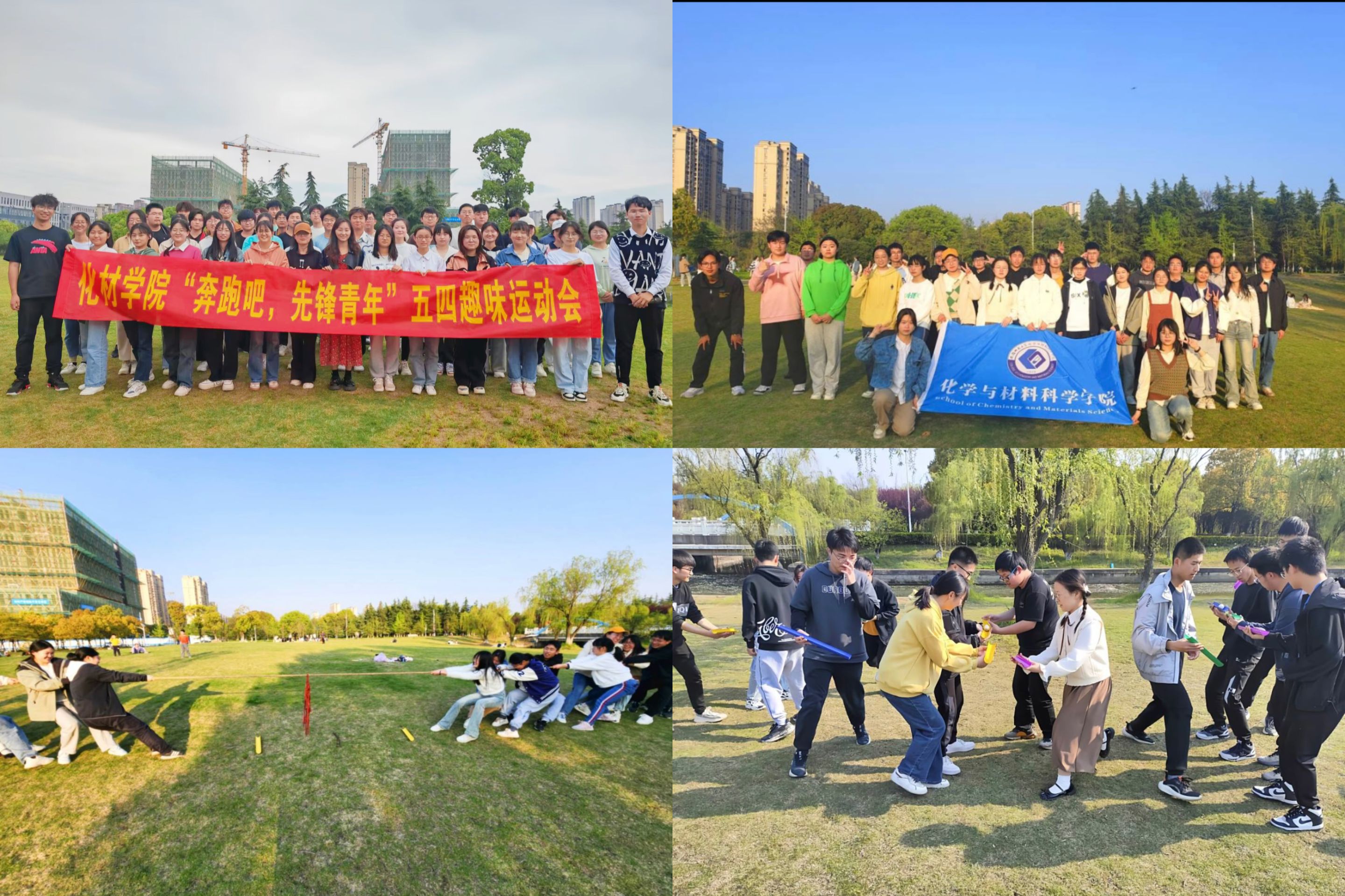 趣味运动强身体。正值五四青年节期间,化材学子将五四文化元素融入到日常素质拓展活动过程中,开展了“奔跑吧,先锋青年”五四趣味运动会,通过本次青年运动会,不仅增进了青年同学之间的班级凝聚力,也提高了青年朋友团结向上意识,同学们大胆追求梦想,让热血绽放。