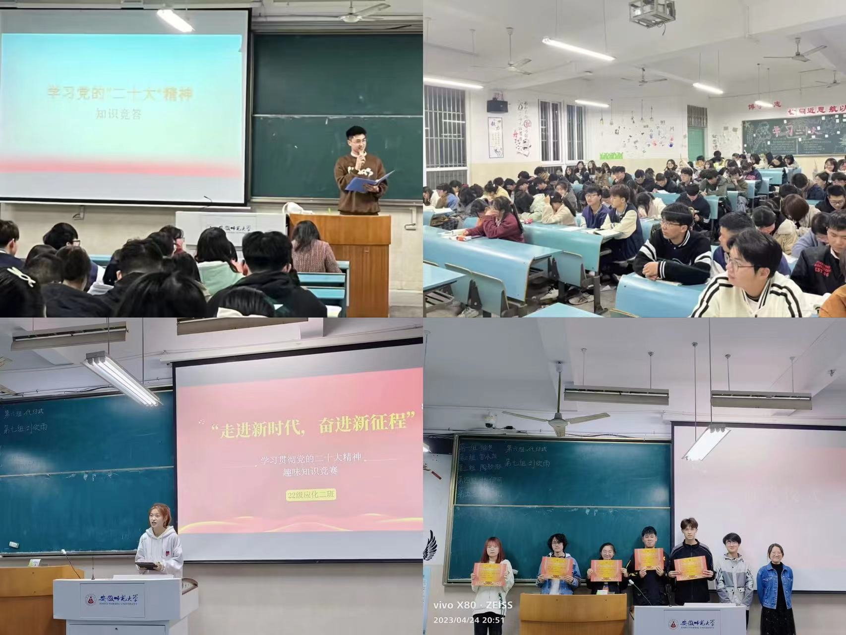 知识竞赛强理论。为深入学习贯彻党的二十大精神,引领化材学子坚定信心跟党走,开展了“走进新时代,奋进新征程”——学习贯彻党的二十大精神趣味知识竞赛活动,结合学习贯彻习近平新时代中国特色社会主义思想主题教育,通过本次理论学习教育,同学们对党的二十大精神以及习近平新时代中国特色社会主义思想有了进一步的认识,提高了大家对中国共产党认可度与归属感,另一方面同学们表示通过知识竞赛和理论学习也培养自己主动学习意识,在未来学习生活中将明确目标和方向,积极发挥主观能动性,完成每一次挑战。