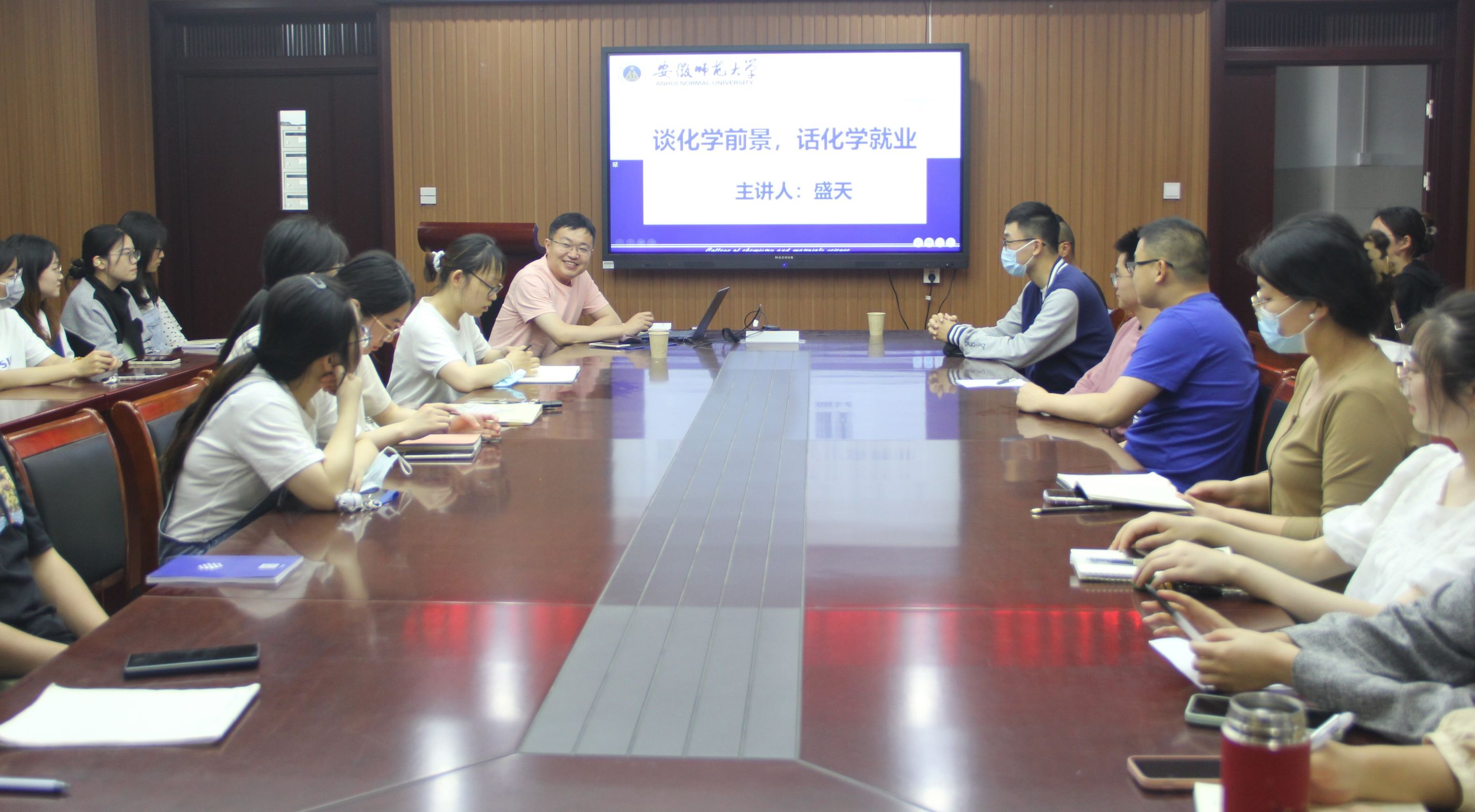 副教授兼2021级研究生辅导员盛天开展题为"谈化学前景,话化学就业"的讲座,2022级研究生辅导员张薇、学院部分研究生参加此次活动。