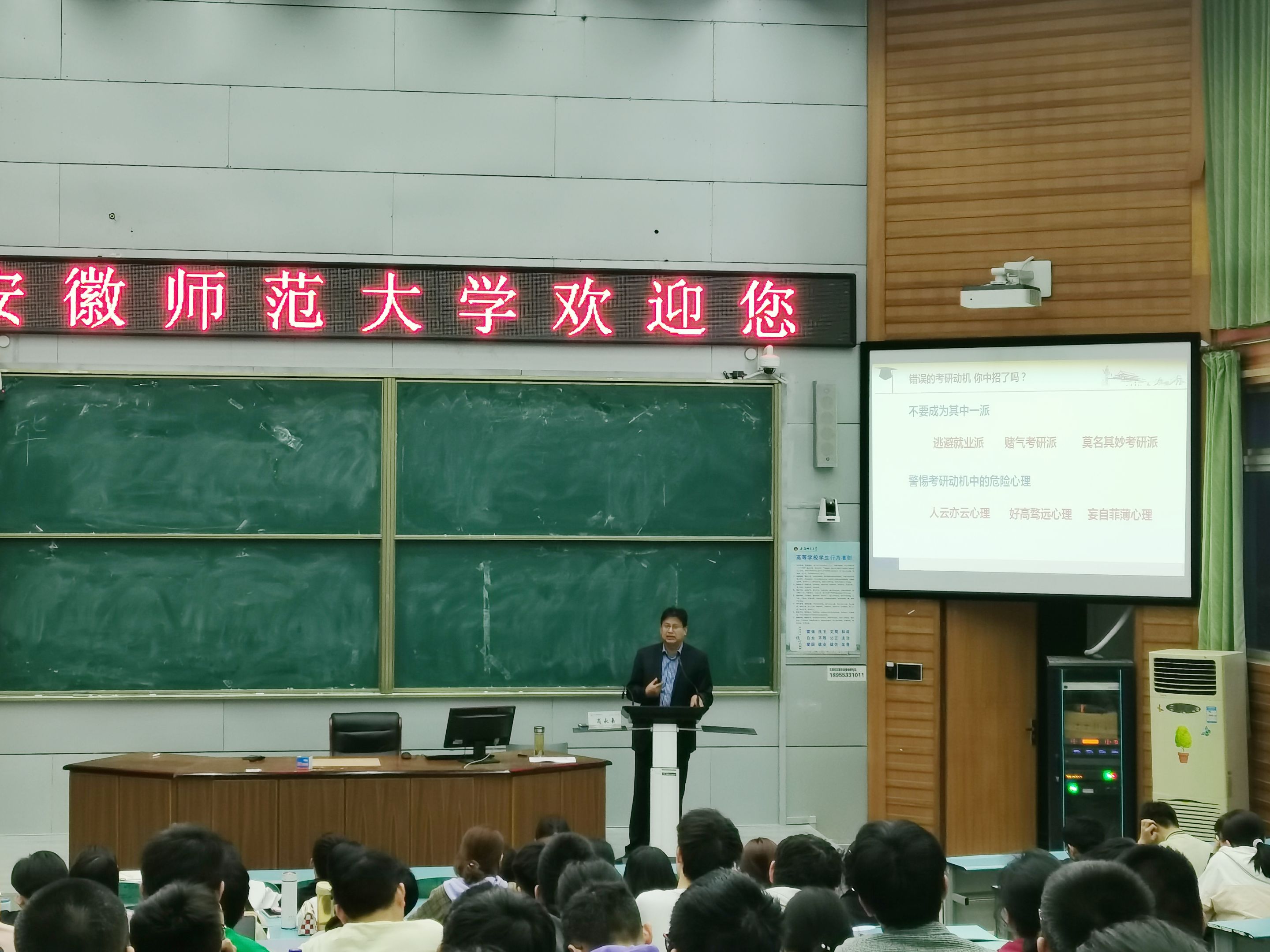 2023届考研选择的地区和学校等分布比例,分析了当今全国院校化学各分支专业的学科排名,并给同学们提出了宝贵的择校经验。引导同学们搜集信息、合理报考学校和专业,依据自身的学习情况确立适当的学习目标,沿着目标努力前进,最后“一战定乾坤”。同学们深受鼓舞、斗志昂扬,教室里响起了热烈的掌声。