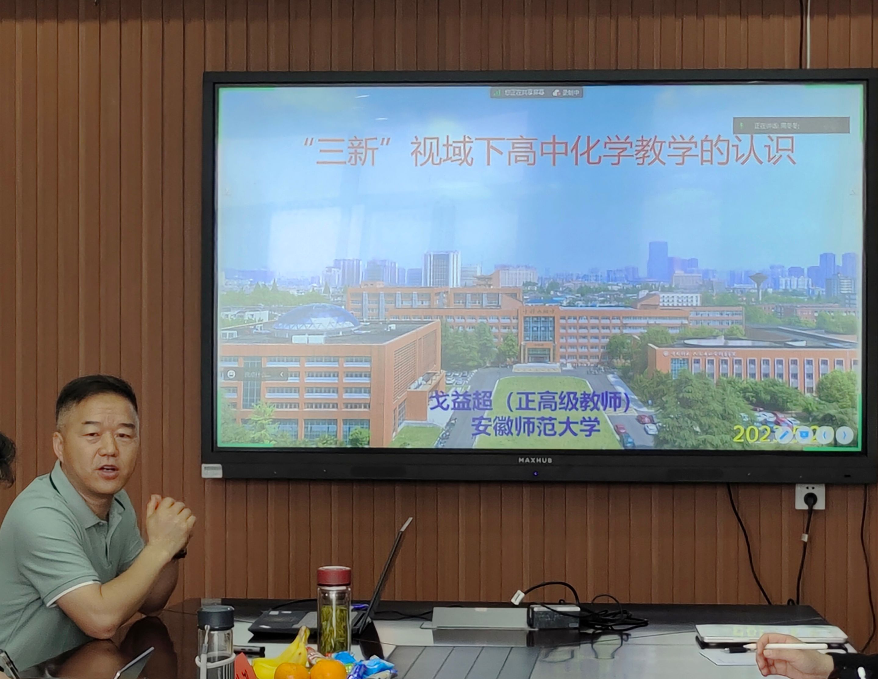 戈益超开展了题为《“三新”视域下高中化学教学的认识》的报告,站在时代背景与新高考背景下提出了思考性问题:“何为教育?”,引发同学们的思考。其次,其从教学理念、教学形式、知识体系、高中教学评价体系、化学学科核心素养的认识思路以及教学价值取向六个方面对当前的教育形式与教学提出建议和指导。而后,其详细介绍核心素养在新教材当中的体现,结合多个案例帮助同学们理解与学习。