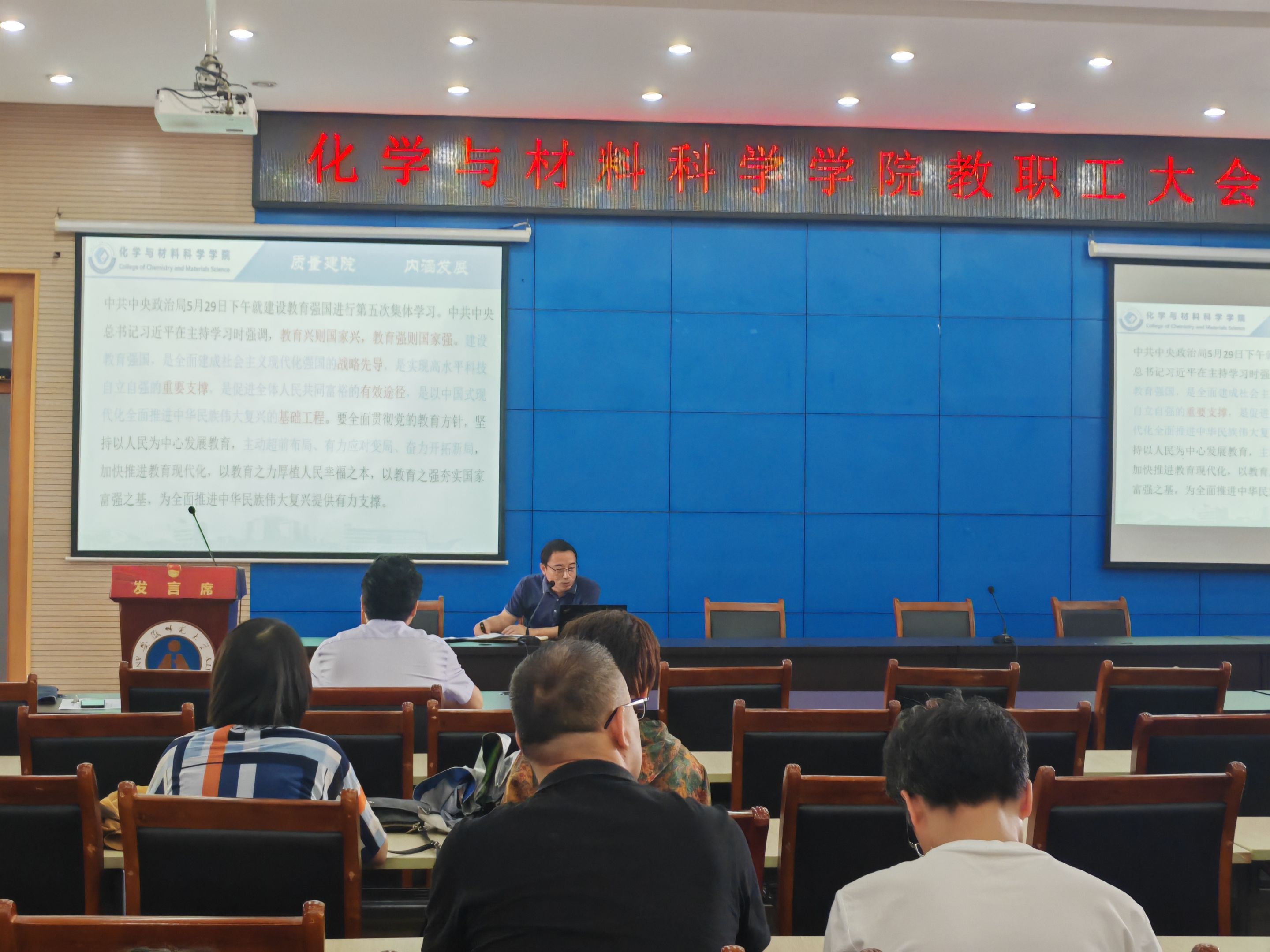 会上,汪俊武领学了《习近平总书记在中共中央政治局第五次集体学习时的重要讲话精神》。教育兴则国家兴,教育强则国家强。建设教育强国,是全面建成社会主义现代化强国的战略先导,是实现高水平科技自立自强的重要支撑,是促进全体人民共同富裕的有效途径,是以中国式现代化全面推进中华民族伟大复兴的基础工程。建设教育强国,龙头是高等教育。学院也要瞄准世界科技前沿和国家重大战略需求推进科研创新,不断提升原始创新能力和人才培养质量,有力推动“两大振兴行动计划”落实落地。