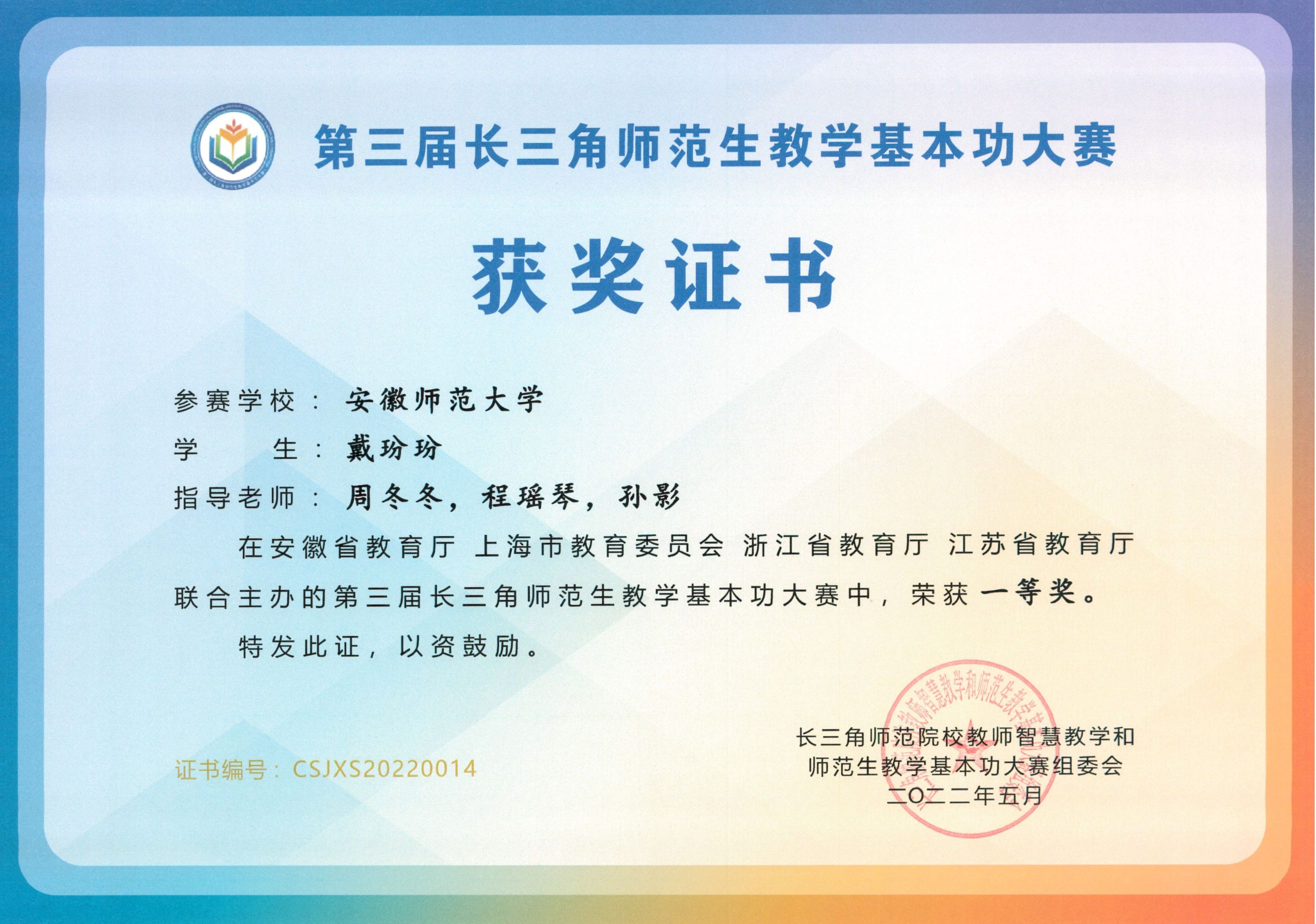 校级师范生技能大赛一等奖,以积极昂扬的精神风貌投身到学科竞赛中。
