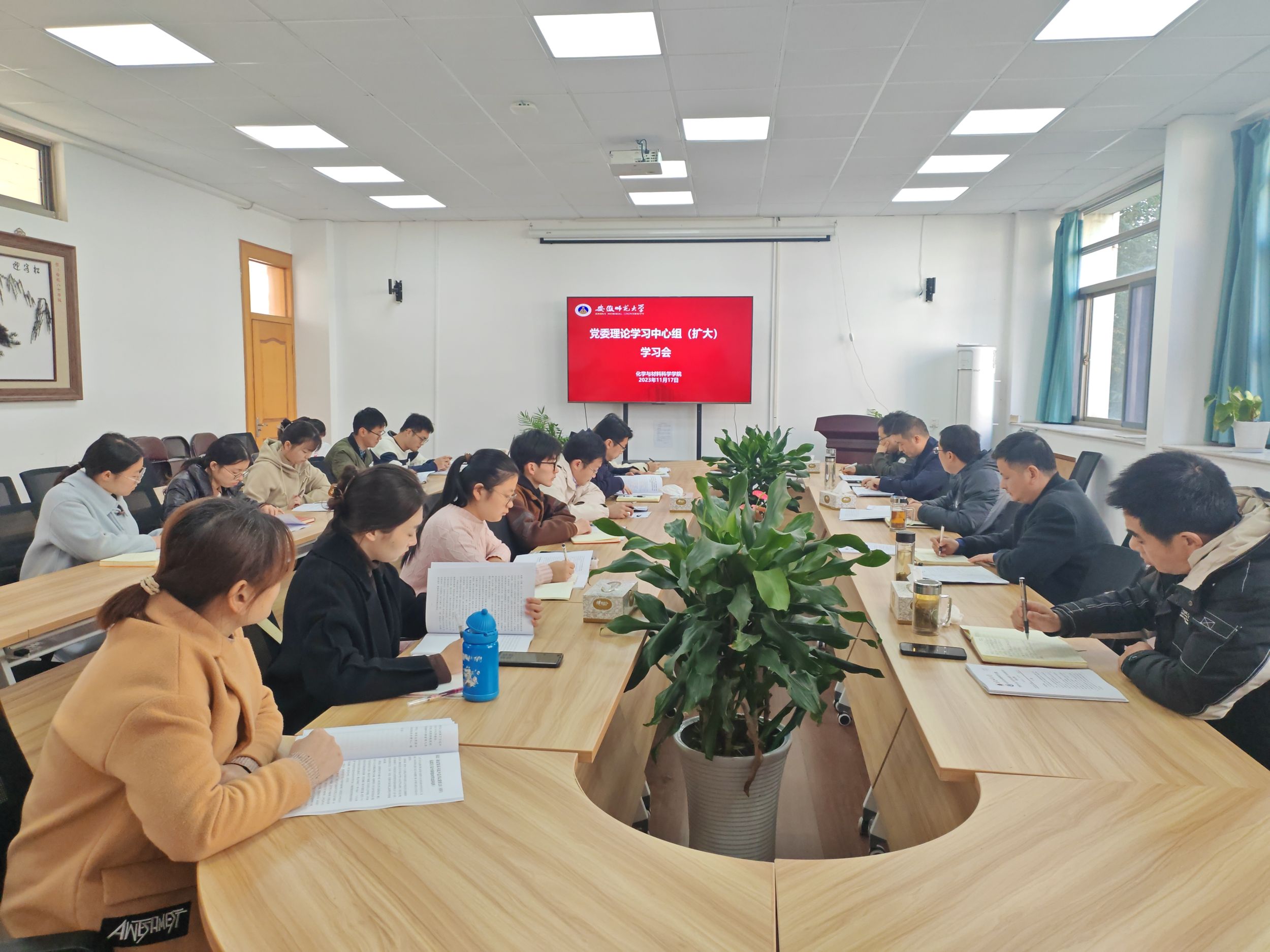 党委在学苑北楼9号楼205会议室召开理论学习中心组(扩大)学习会,深入学习贯彻习近平总书记最新重要讲话和重要指示精神,专题学习习近平文化思想,研究部署近期学院党建工作,学院党委委员、纪委委员、全体党支部书记参会。会议由学院党委书记汪俊武主持。