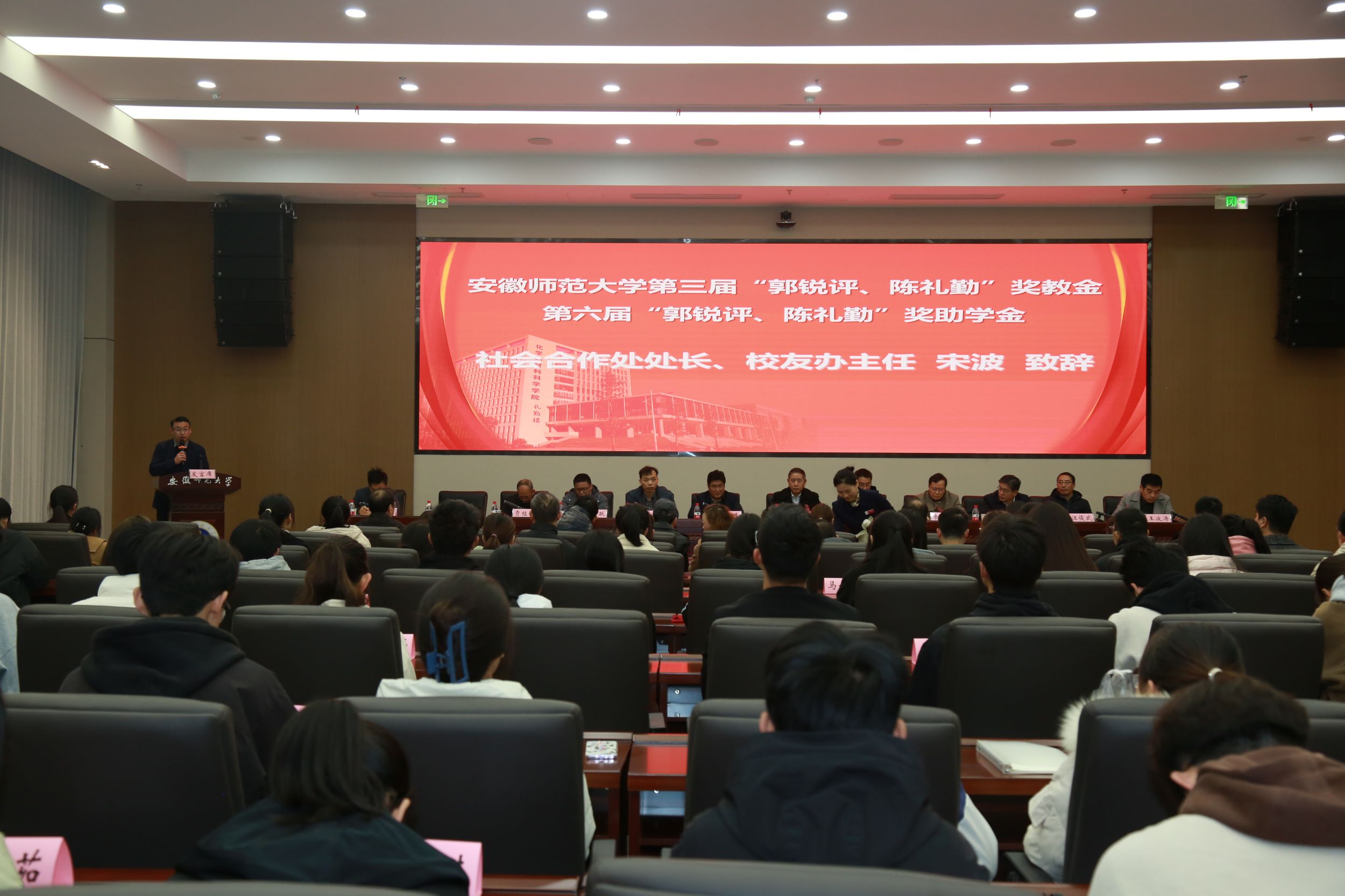 宋波代表学校向郭锐评女士、陈礼勤先生深厚的爱校情结表示最真诚的感谢,他指出校友是母校靓丽的名片,母校的建设与发展得到了校友们的广泛关注,得益于校友们的大力支持。他勉励获奖的老师们立足岗位、爱岗敬业、潜心研究,做“好老师”“大先生”;勉励各位同学勤学善思、坚定自信、勇攀高峰,做有理想、敢担当、能吃苦、肯奋斗的新时代青年;勉励全体师生传递爱心、弘扬正气、开拓创新,不辜负郭锐评女士、陈礼勤博士的殷切期望,在今后取得更大成绩,为学院和学校发展贡献出力量。