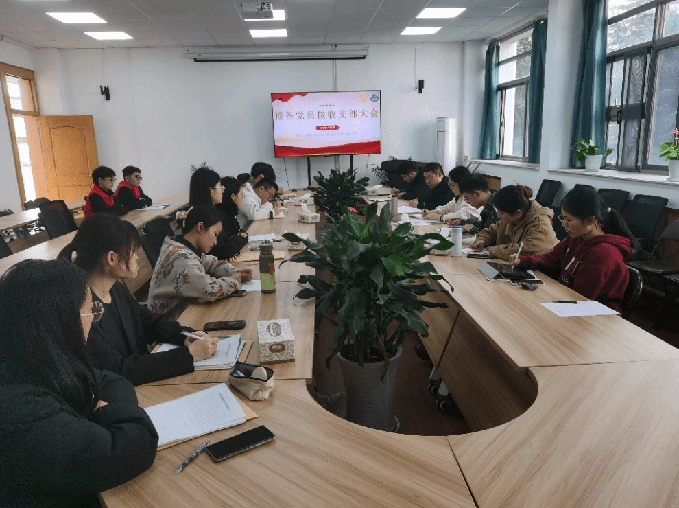 应化系本科生党支部在学苑北楼204会议室召开党支部大会,开展理论学习,讨论苏良建、朱会凌2名预备党员转正、接收于素芳等4名同志为预备党员相关事宜。会议由党支部书记王芳同志主持。本次支部大会应到会党员12人,实到会党员11人,其中正式党员4人,1位预备党员因课请假,党员人数符合组织规定。