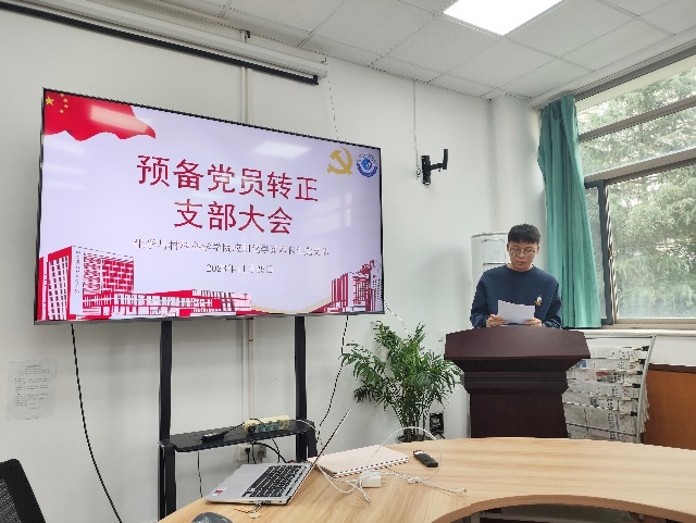 在发展党员大会上,苏良建、朱会凌2名预备期满的同志依次宣读了转正申请,汇报自己在预备党员期间思想、学习、生活以及工作上的发展情况,并表明自己加入中国共产党的坚定信念。同时,入党培养联系人及与会党员对申请转正的预备党员充分发表意见,讨论其是否符合转正条件。最后由支部正式党员进行无记名投票表决,大会全票通过苏良建等2名同志按期转为正式党员,拟提交学院党委审核。