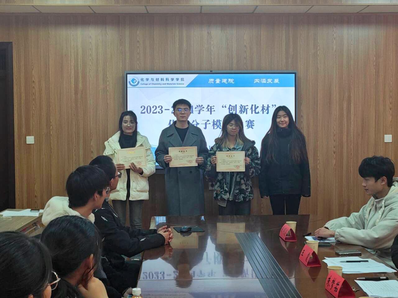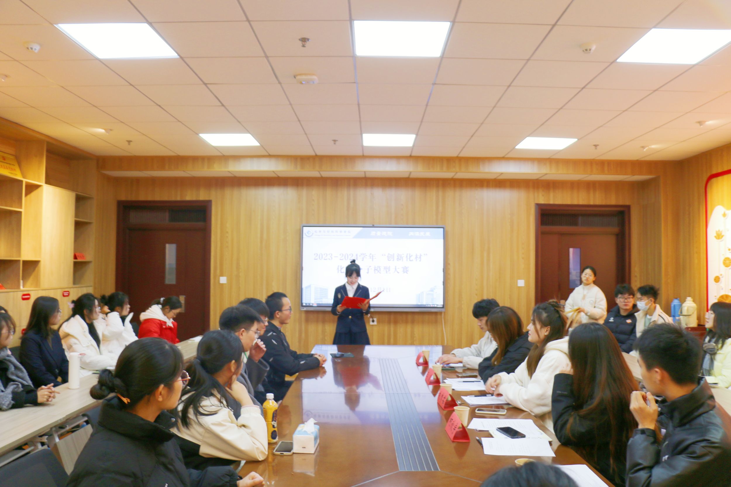 在礼勤楼707室举行2023-2024学年“创新化材”化学分子模型大赛,学院团委副书记王霞、朱梦茹担任评委。