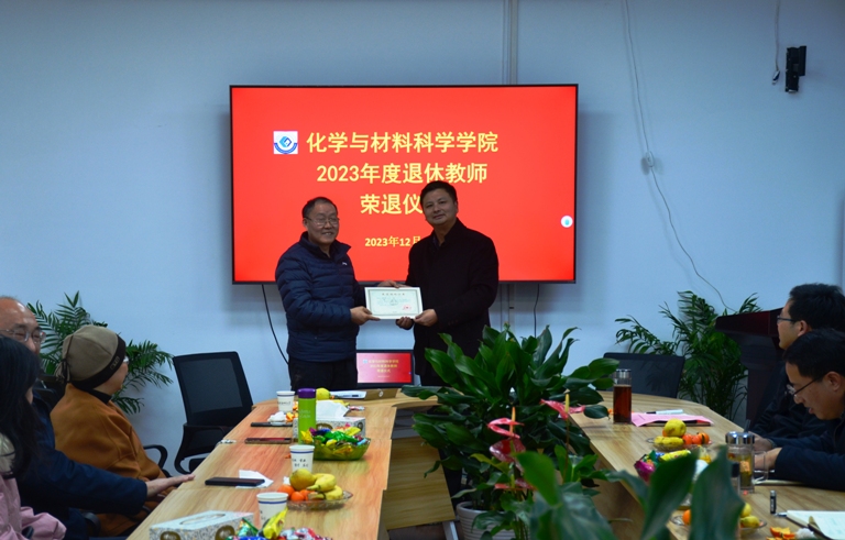 王波涛首先介绍学院2023年退休教师工作以及从教经历,接着周双六副院长向几位老师颁发光荣退休证书。