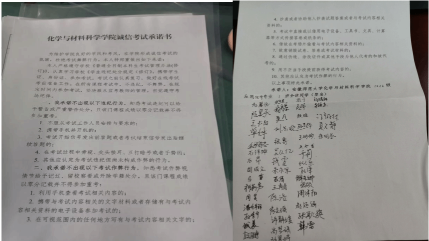 宣誓签名,塑造诚信品格。为加强考风考纪,深化诚信理念,引导同学们做诚信大学生,低年级各班辅导员围绕“考试诚信”“学术诚信”带领班级同学集中学习了《学生手册》上关于诚信考试的相关内容,并通过讲述身边真实案例告诫同学们要诚信考试,以及诚信对于一个人的学习、事业、交际的重要性。各班级学生通过集中签订诚信考试承诺书、开展诚信宣誓活动,纷纷表示在以后的工作与学习中要以诚信的优良传统美德指导自己的一言一行。