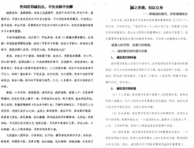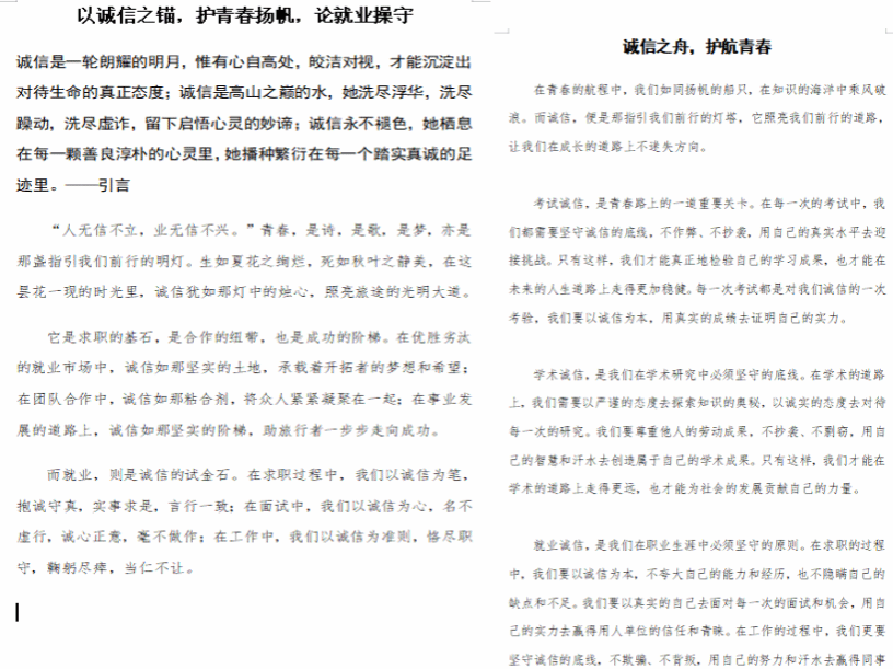 面向全体学生开展了2024年度诚信主题征文活动,各年级学生围绕考试诚信、学术诚信、就业诚信、还贷诚信等主题撰写自己的青春奋斗故事,累计参与80余人次。通过此次活动,形成 “诚信做学生,营造新风貌”的浓厚氛围,为我院培养德才兼备的优秀人才铺设基础。