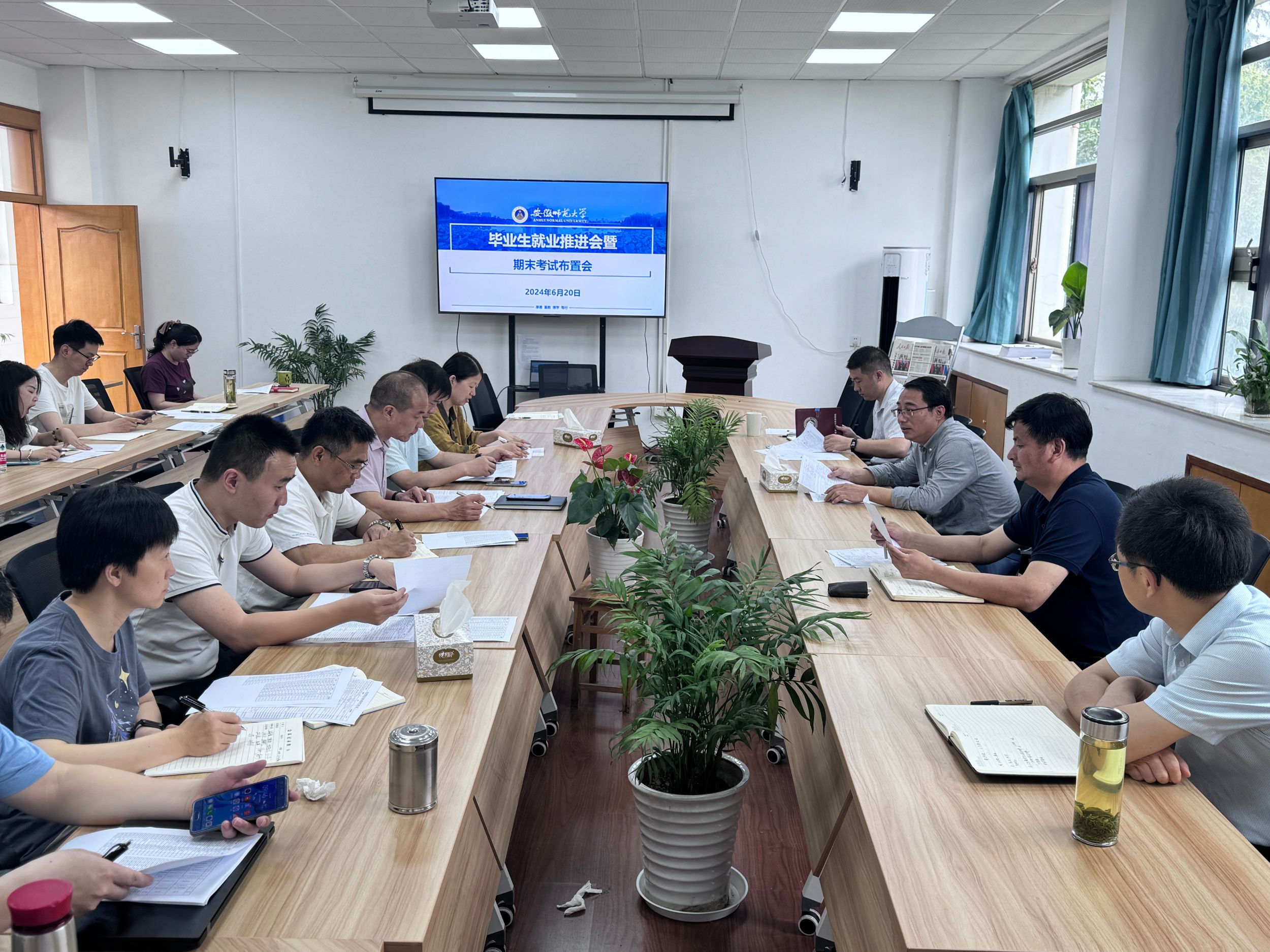 召开学生工作委员会会议(总第7期)研究学生期末考试、暑期学生留校、毕业生重点群体帮扶、就业推进、贫困生认定、暑期小学期和暑期社会实践等工作。学院党委书记汪俊武、副院长周双六、方臻、学术委员会代表、各学位点和专业负责人、教师代表、科室秘书、全体专兼职辅导员参会,会议由院党委副书记李古州主持。