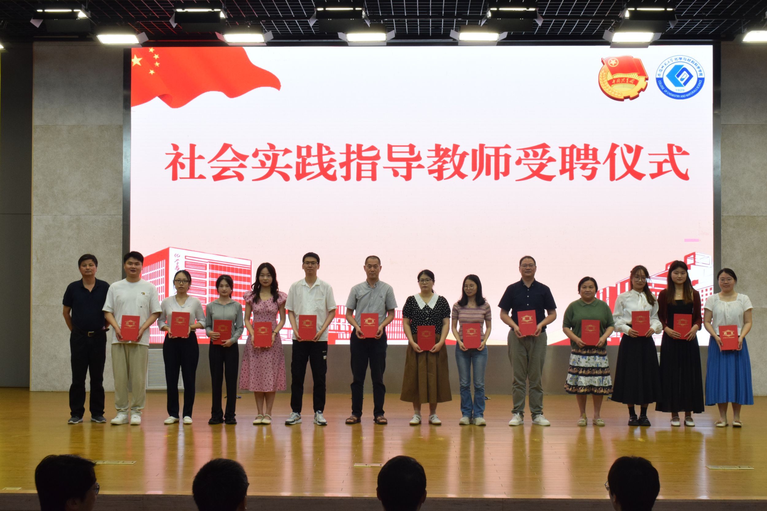 在花津校区实习实训中心一楼报告厅举行“行走的思政课堂”2024年大学生暑期“三下乡”社会实践出征仪式。校思政指导教师、马克思主义学院副院长赵冰,校思政指导教师何晔,学院领导班子、指导教师代表以及全体实践队员参加仪式。出征仪式由学院团委书记梅冠东主持。