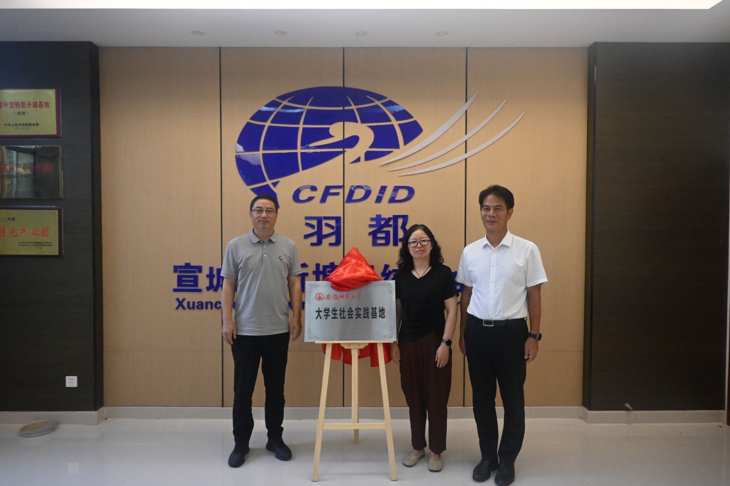 在宣城市新塘羽绒产业园建立的大学生社会实践基地揭牌,为后续合作打下坚实根基。