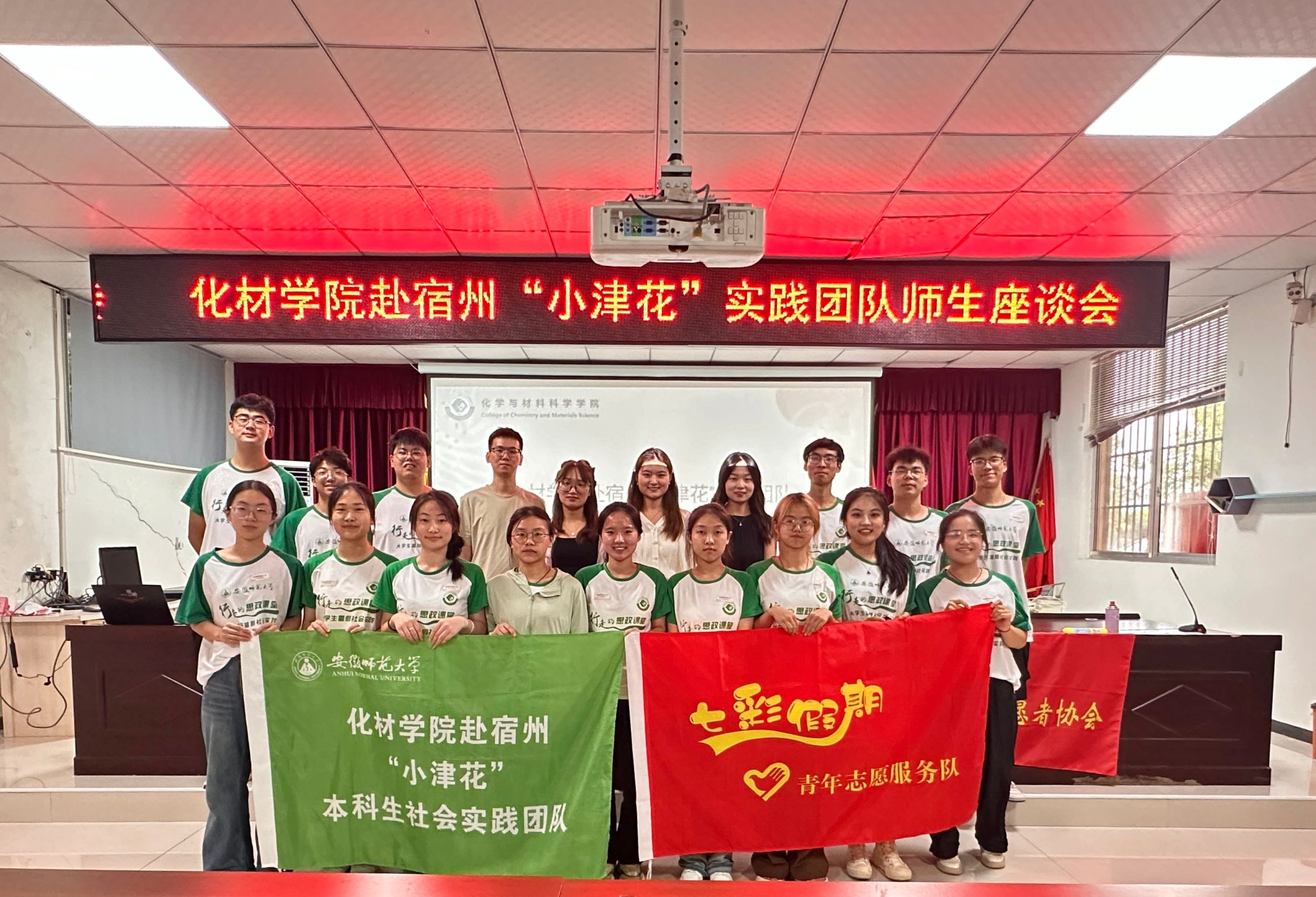 7月18日,学院团委副书记梁成、王霞等一行前往宿州市慰问了“小津花”本科生社会实践团队。在座谈会上,团队成员热情分享实践体会收获,纷纷感慨到“当好一名老师是这般的不易”“我们在实践中体会到教育学生带来的使命感,体会到被学生认可带来的喜悦感,体会到被家长信任的带来的责任感”等等。随后队长张岩总结到虽然实践过程中我们收获了很多,但我们还有许多不足需要不断改善,未来几天的实践将和团队成员一起努力克服困难。