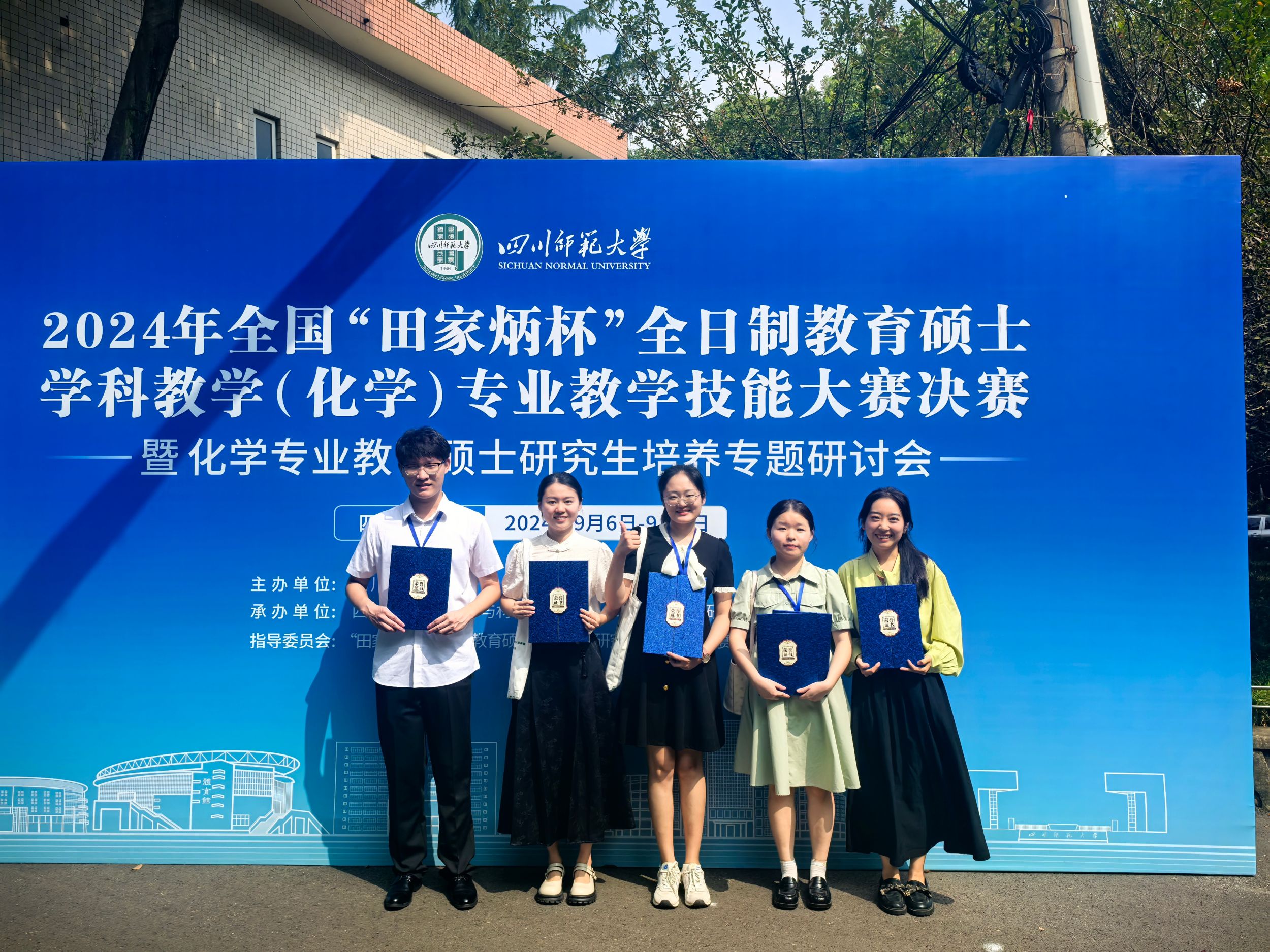 2022级学科教学(化学)专业研究生李涵琪荣获一等奖,田一鸣、李一凡、谭燕利、黄淑雯荣获二等奖,孙影、周冬冬、程瑶琴、张四方四位老师获得优秀指导教师奖,创历史最好成绩。
