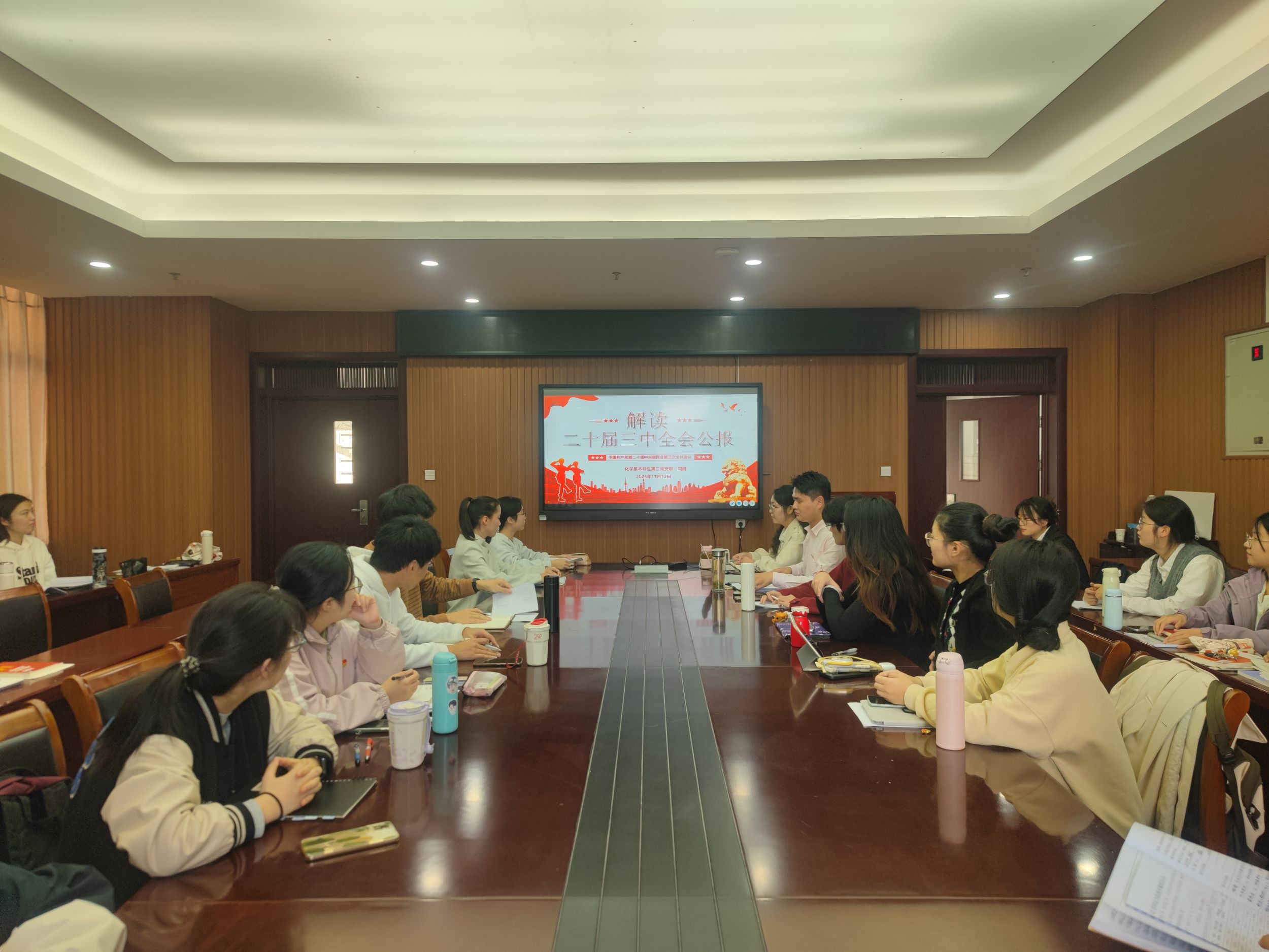 随后,支部书记陶勇就二十届三中全会公报进行了专题解读。从会议提出的“七个聚焦”、进一步全面深化改革的总目标、具体部署,具体解读了会议提出的思想理念。随后,陶勇表示,学习宣传贯彻二十届三中全会精神,是当前和今后一个时期的重要政治任务,支部全体党员同志要提高政治站位,不断深化对党的二十届三中全会精神的理解和认识,将学习成果转化为推动今后学习、工作取得新突破的强大动力和实际行动。