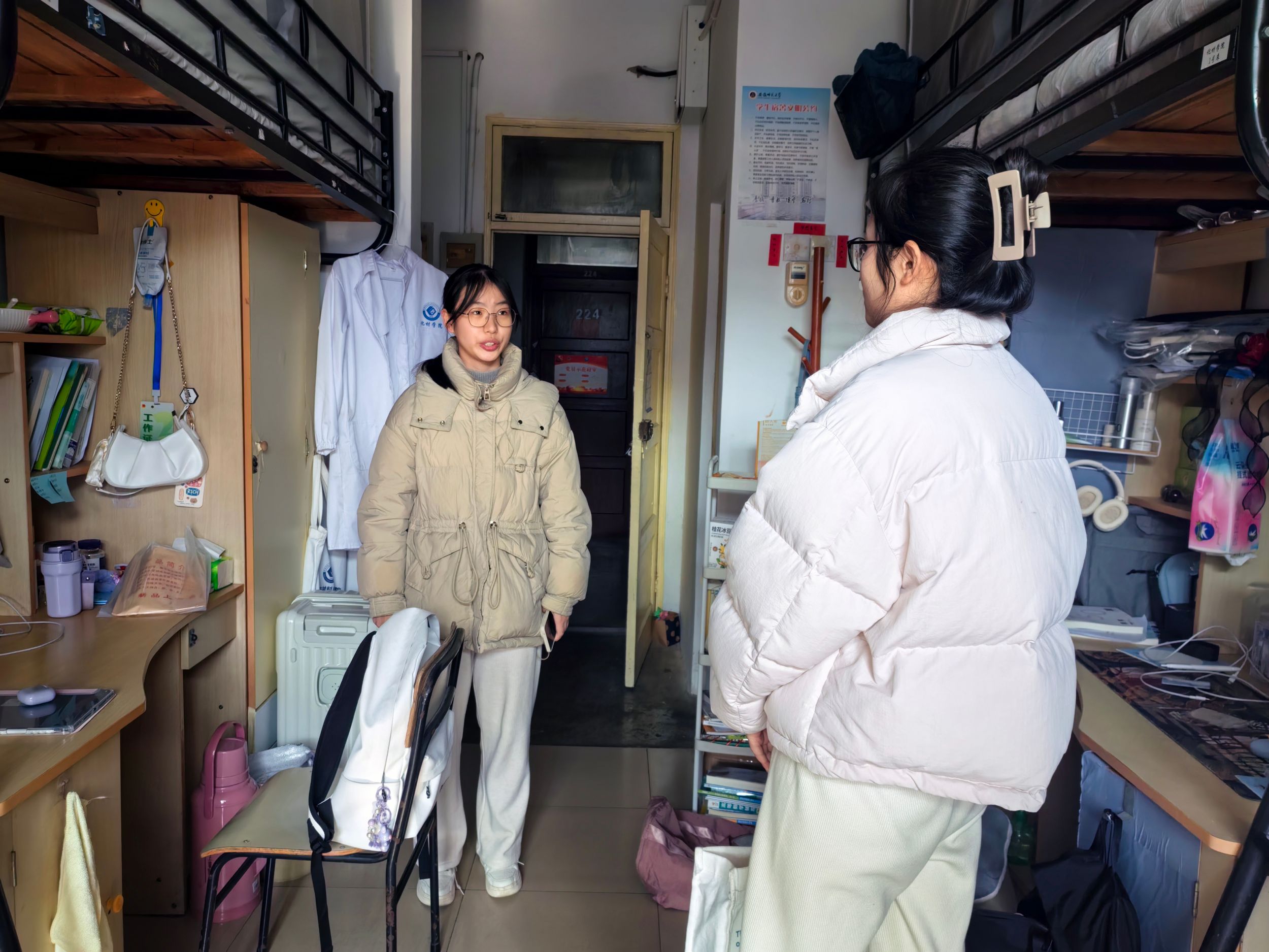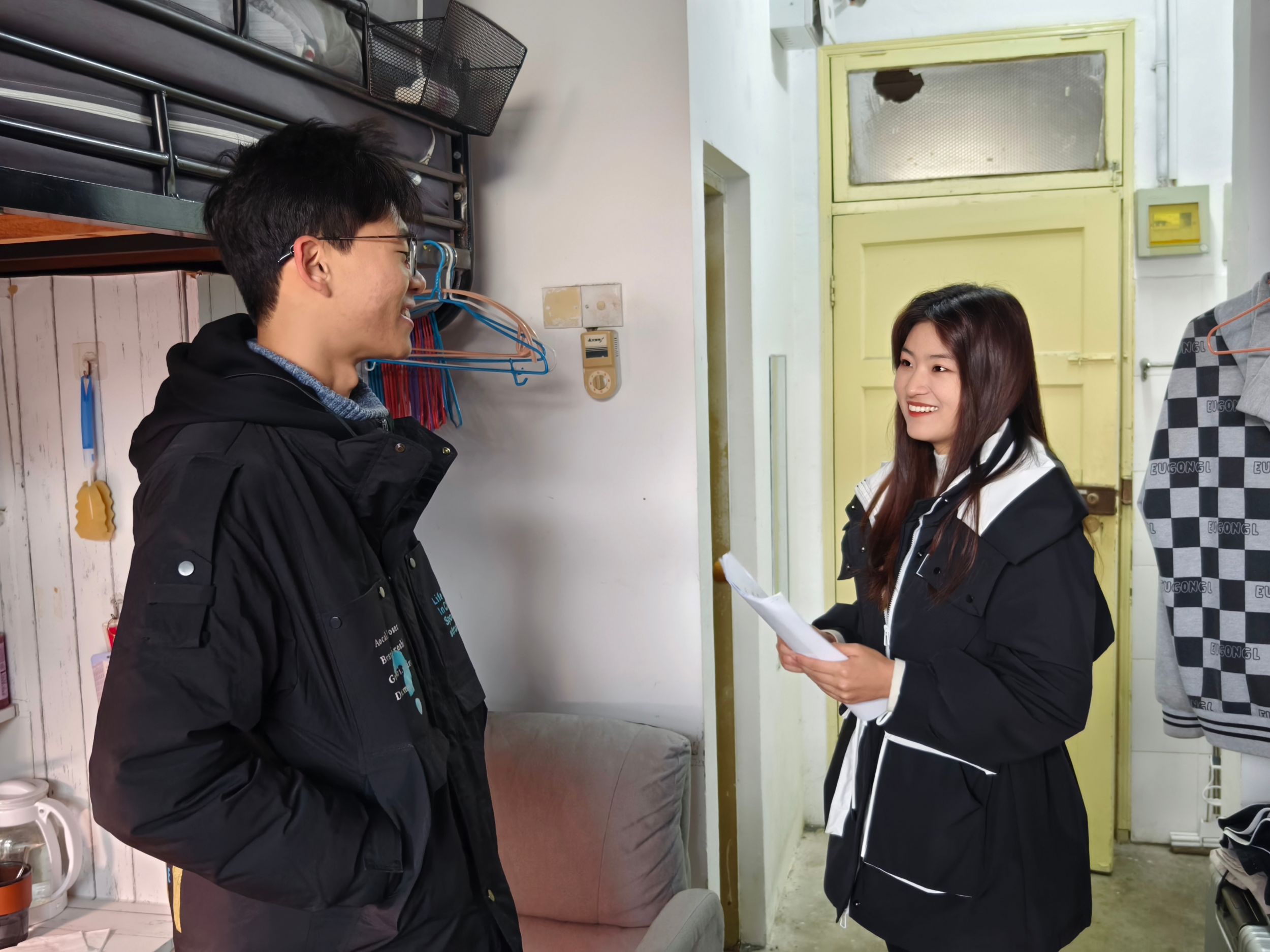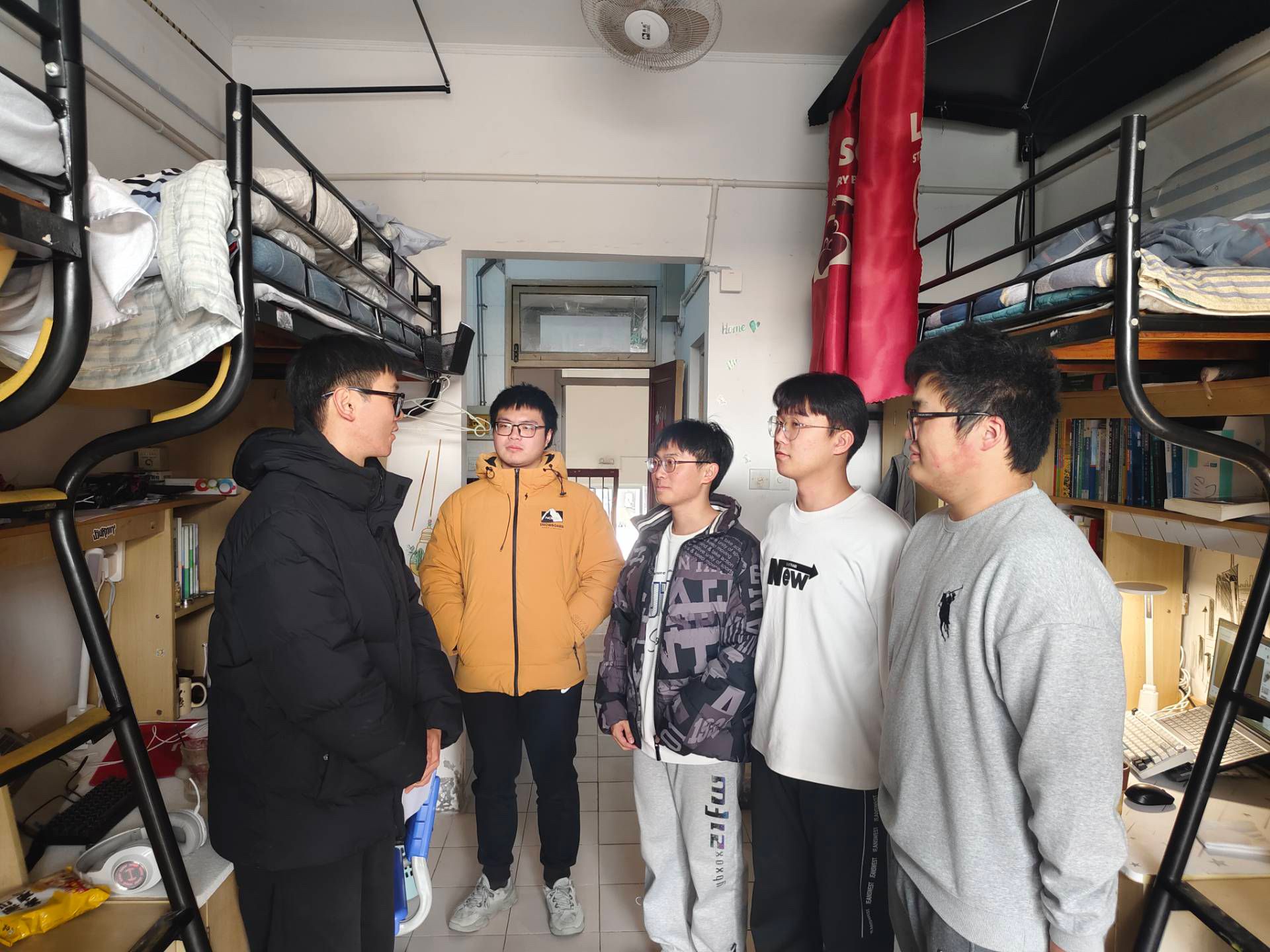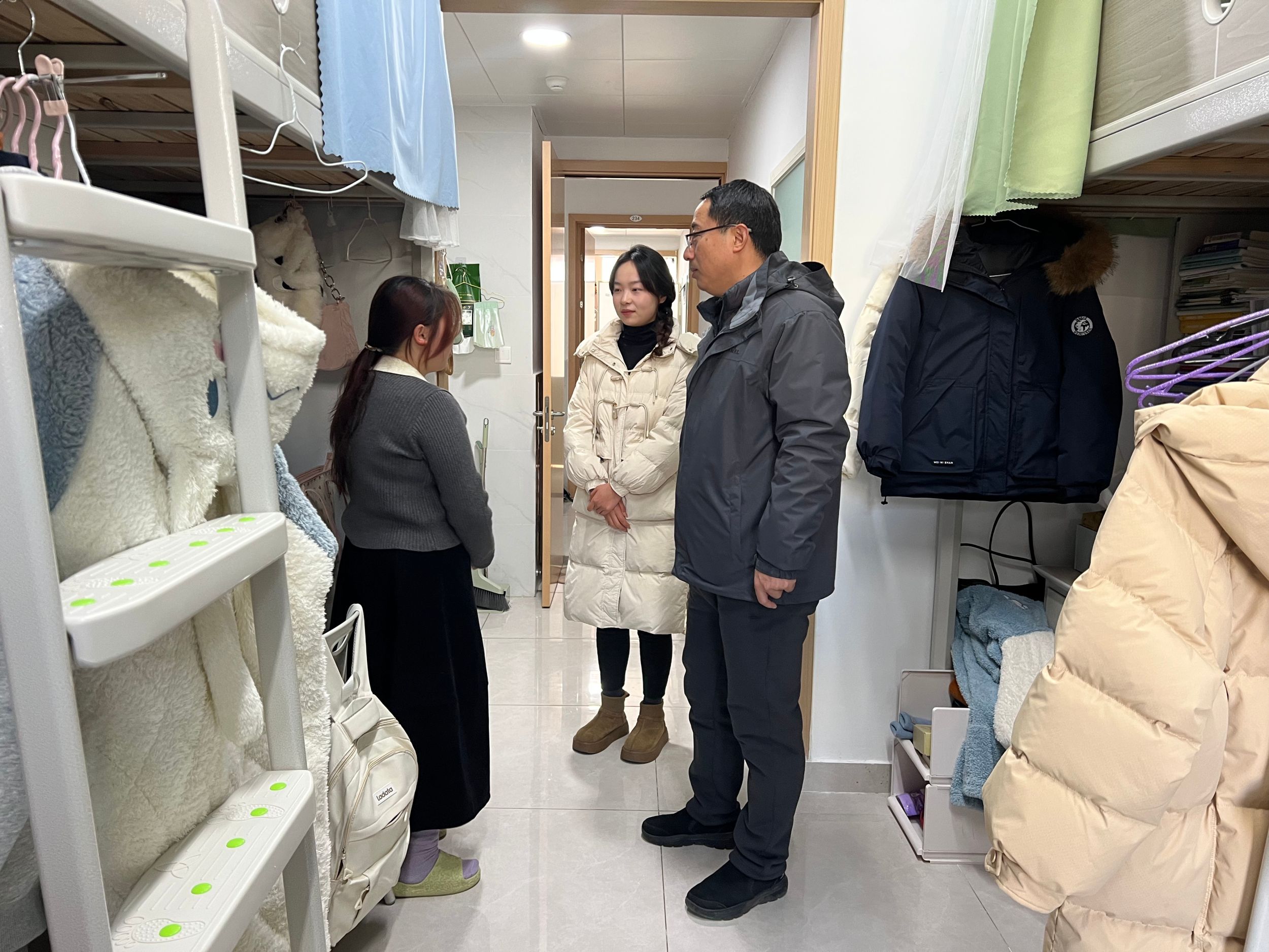 领导班子、辅导员深入冬和园59栋“一站式”学生社区及各年级宿舍开展冬季宿舍安全卫生检查活动。