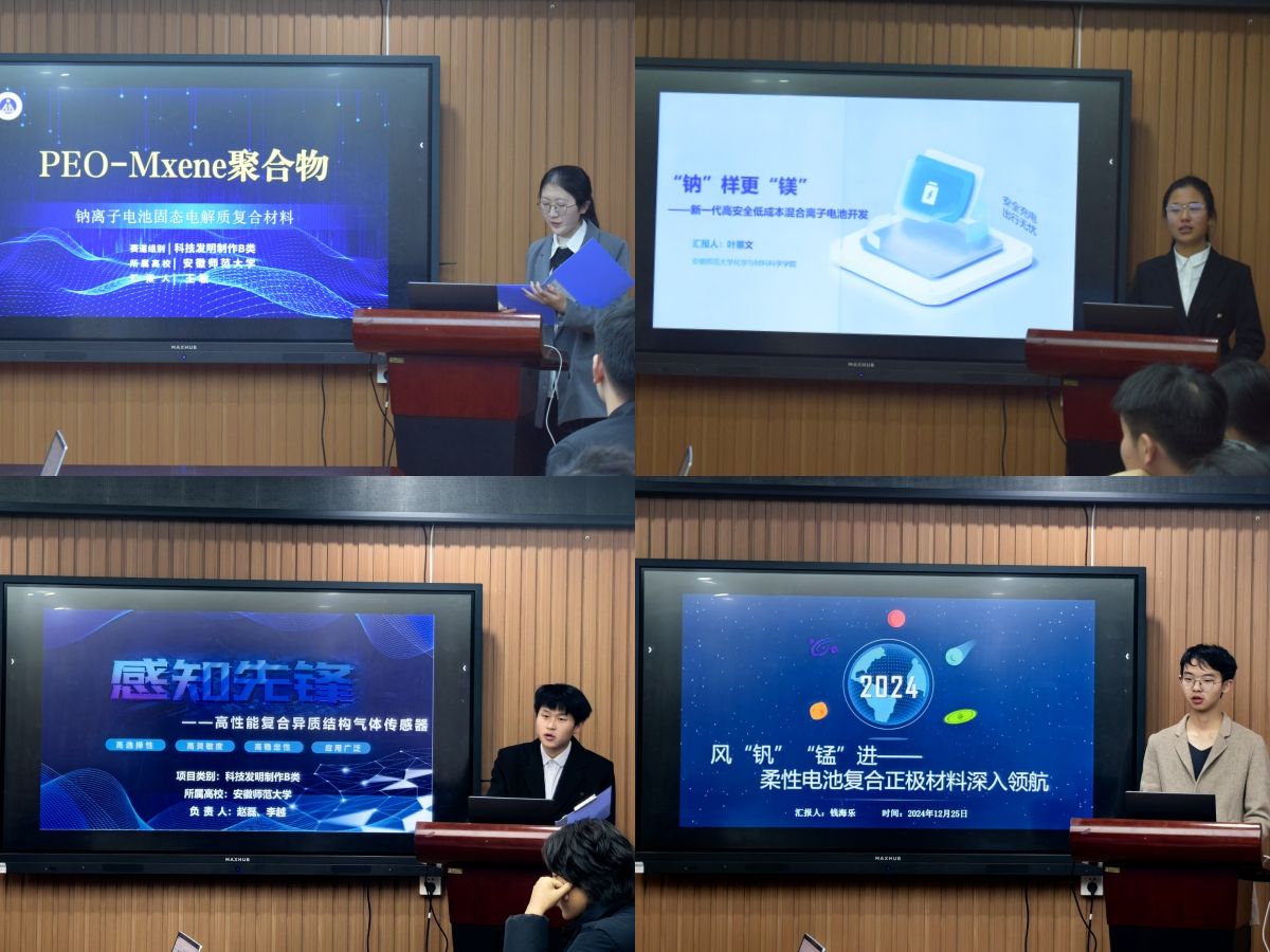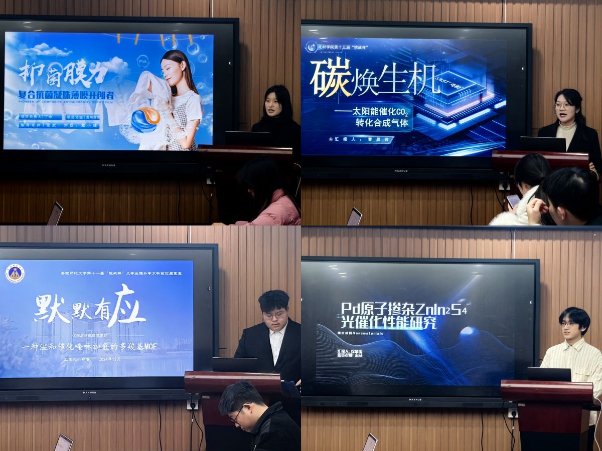 “感知先锋—高性能复合异质结构气体传感器”的研究基于 Fe2O3复合异质结构,设计出一种在挥发性有机物检测方面具有高选择性,高灵敏度和高稳定性的气体传感器。“氢逸之心—前沿电解海水制氢催化剂的研制”展示队伍在氢能开发和电解海水制氢等技术领域的创新成果,主要为在成本减少40%的前提下,成功制备出具有片层纳米结构并有1.63%镍掺杂的MoSe2电解海水制氢催化剂,其催化效率较前类产品大幅提升。“川‘硫’不止—钠硫电池多孔碳硫正极材料”致力于研发新型硫正极电池的载体材料,多孔碳基材料由于其丰富的孔洞和三维网络结构,从而达到对硫的物理限制,从而产生多硫化物提供吸附位点,提高硫的导电性以达到提高电池循环稳定性的目的。“钌如指掌—新型高性能锂硫电池复合正极技术”则聚焦于新型电池正极材料研究。“神来之‘吡’—新型吡啶碱分子筛催化剂的引领者”和“晶筛无界—新型绿色煤矸石基分子筛的产业化先驱”关注新型分子筛催化剂的应用,采用新合成方法,合成了新型催化剂,从而剔除不良反应。“‘钠’样更‘镁’——新一代高安全低成本可充电电池”开发新型钠/镁混合电池,聚焦新型电池研究。本次比赛队伍的课外学术创作涉及新能源的利用及新型电池的研发等多个领域,紧密跟随国家大力推动新质生产力发展的步伐,充分体现了化材学子积极承担社会责任与科技创新的精神风貌。