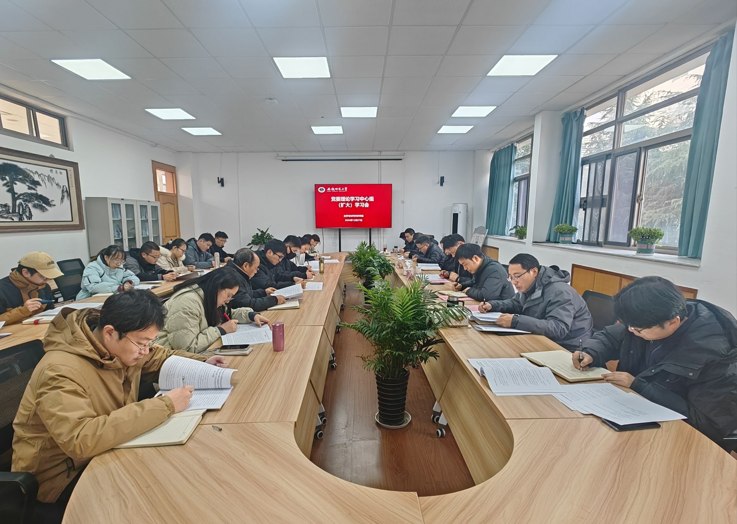 召开党委理论学习中心组(扩大)学习会,全体院领导、党委委员、支部书记和行政教辅人员参加学习会,学校党委理论学习中心组列席旁听工作组成员,学校办公室主任王刚、文学院党委副书记(主持党委工作)戴和圣、文学院党委秘书朱露露列席旁听。会议由学院党委书记汪俊武主持。