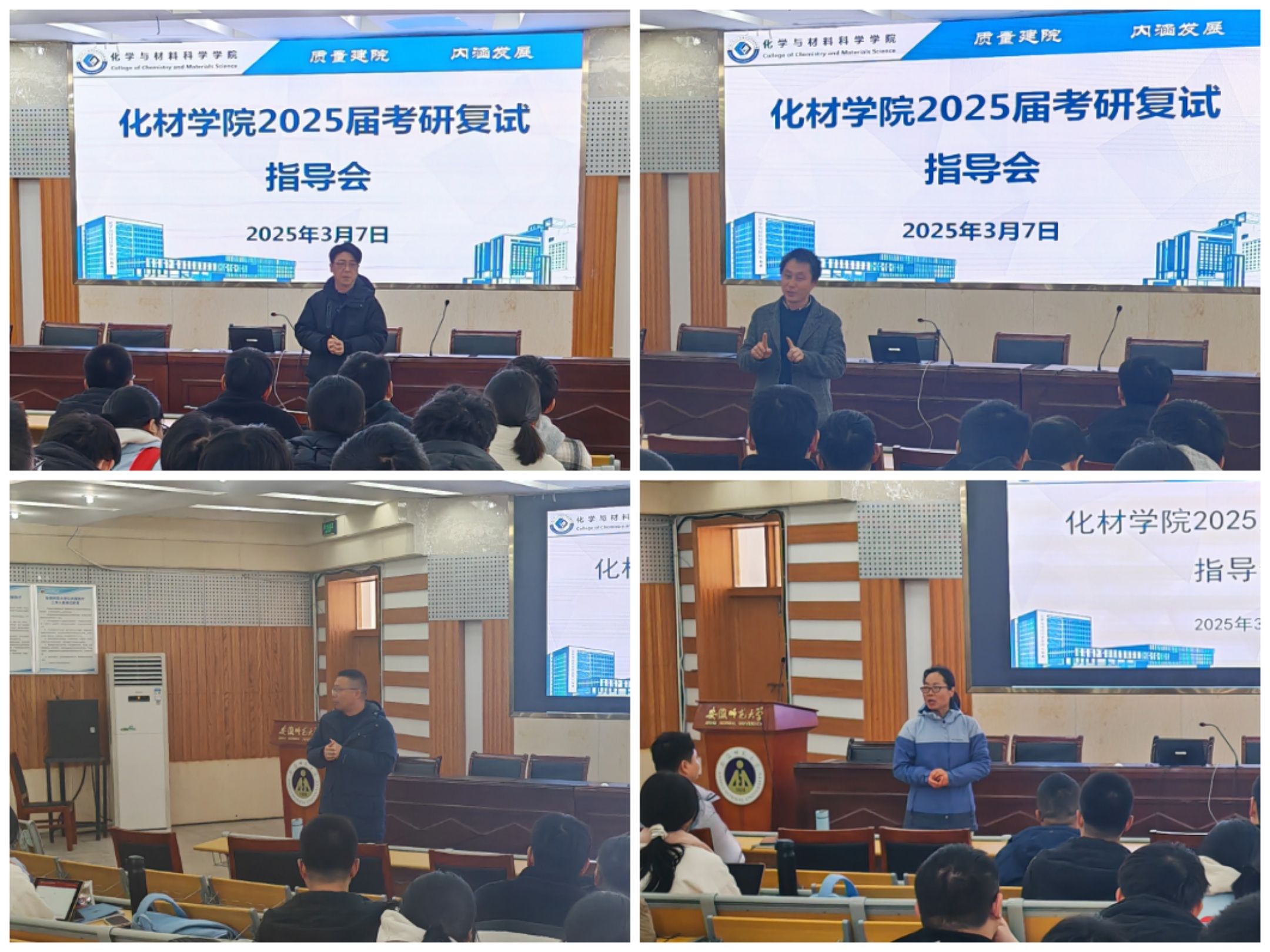 副院长崔鹏以详实数据分析了今年全国考研形势与化学材料类学科复试特点,指出“调剂窗口期短、竞争激烈”,建议学生“拓宽信息渠道,主动出击,同时做好多手准备”。党委副书记李古州在总结讲话中充分肯定同学们的拼搏精神,并寄语广大同学:“考研是人生的重要历练,无论结果如何,学院永远是你们的坚强后盾。希望你们以扎实的专业功底、从容的心态和诚信的态度迎接挑战,在复试中展现化材学子的风采!”。