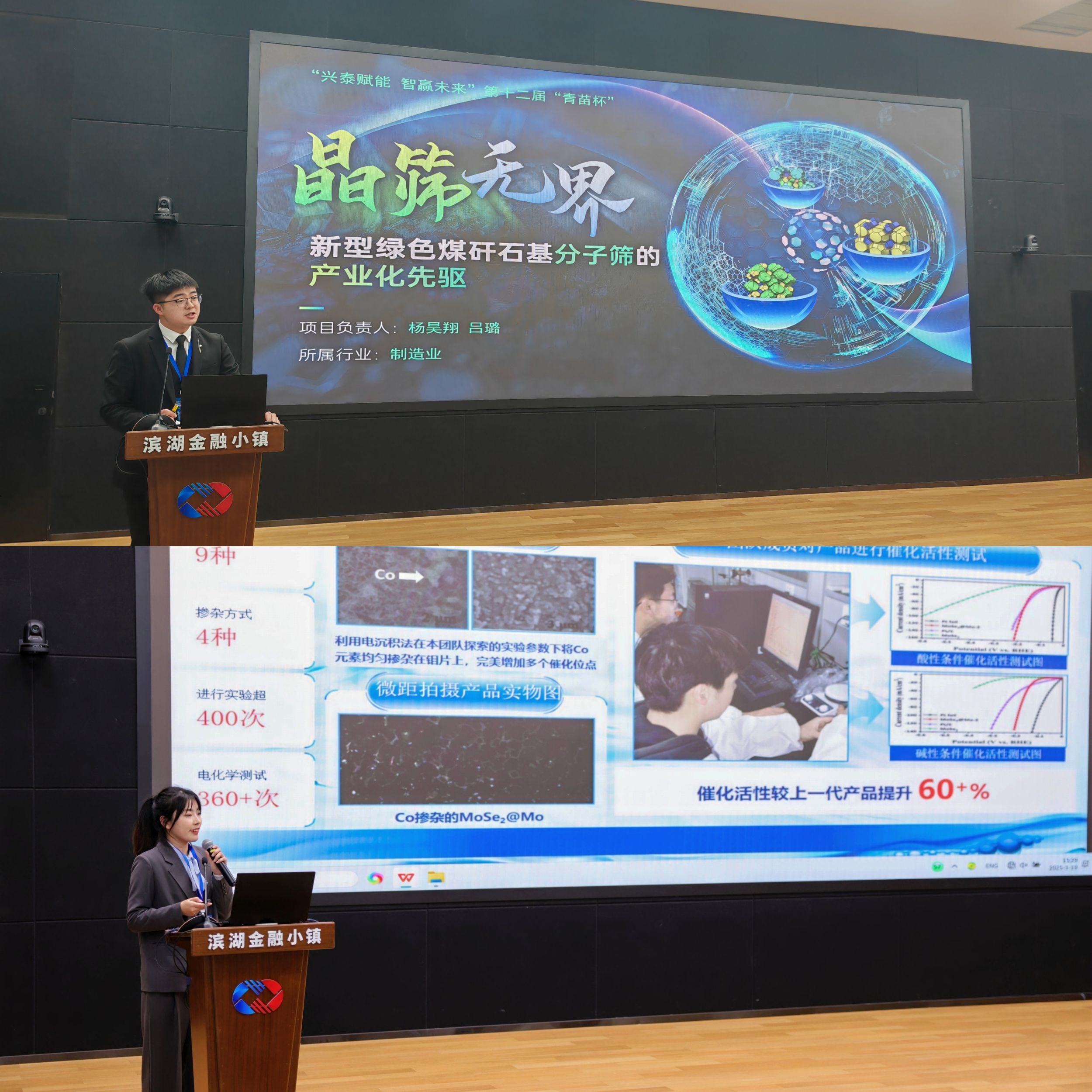 《晶筛无界—新型绿色煤矸石基分子筛的产业化先驱》项目荣获金奖,并与合肥滨湖金融小镇产业孵化基地签约合作协议,《过往氢来—工业化制备高效制氢催化剂》项目荣获银奖,实现学院在该项赛事金奖突破。