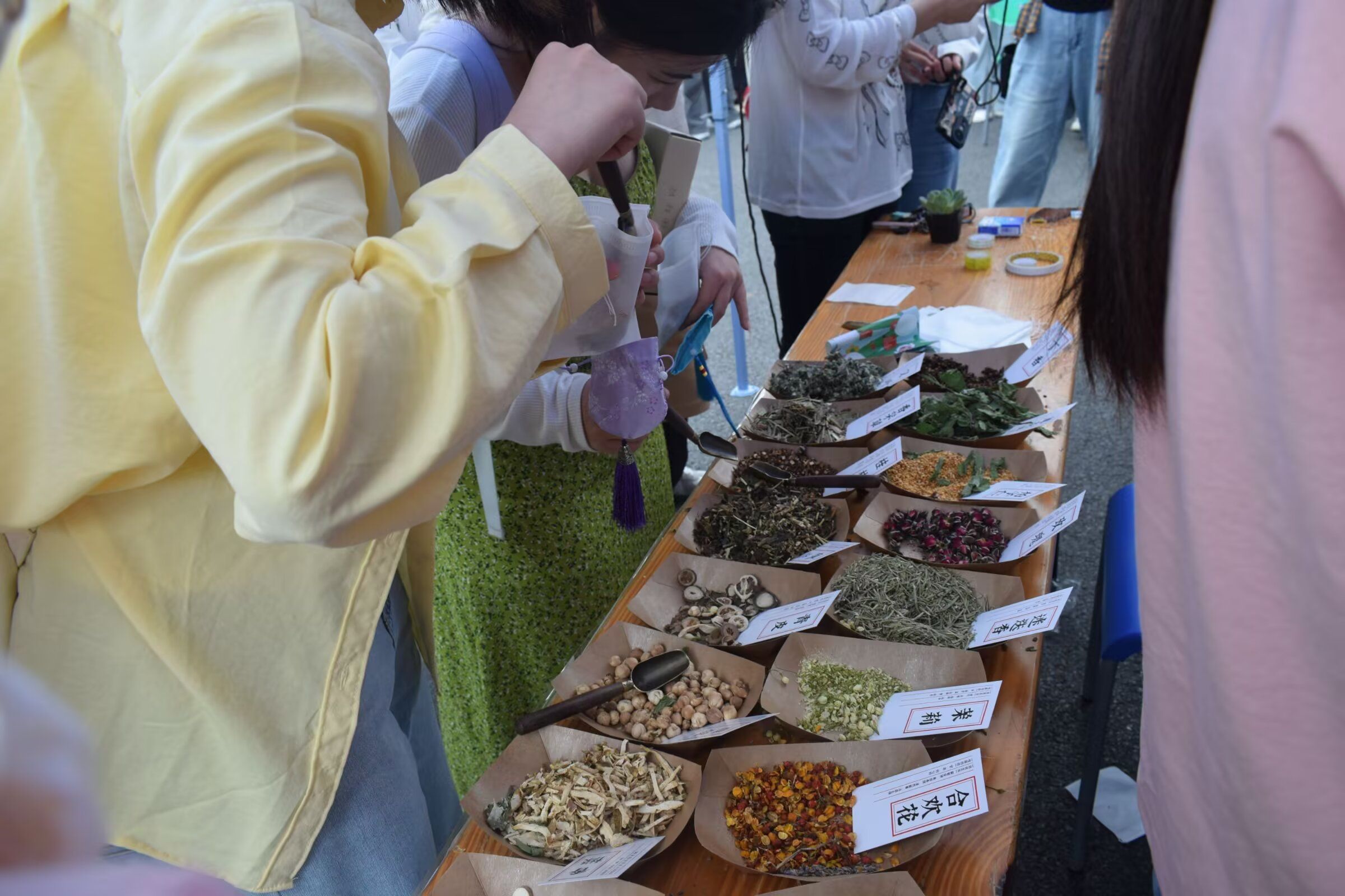 5月26日在花津校区二食堂广场上,在端午佳节即将到来之际,学院发展辅导站精心策划多项特色传统活动,以传统养生与化学知识融合为亮点,设立“‘艾’护心灵,锤走压力”艾叶锤手工制作、“草本织韵,囊藏静气”香囊调配两大体验区。参与者在缠绕艾绒、调配草药的过程中,感受指尖与草木的对话,在传统技艺中释放压力、舒缓身心。现场同步设置抽奖环节,手持风扇、绿植盆栽罐头等奖品引发热烈互动,集章兑换机制进一步增强了活动趣味性。