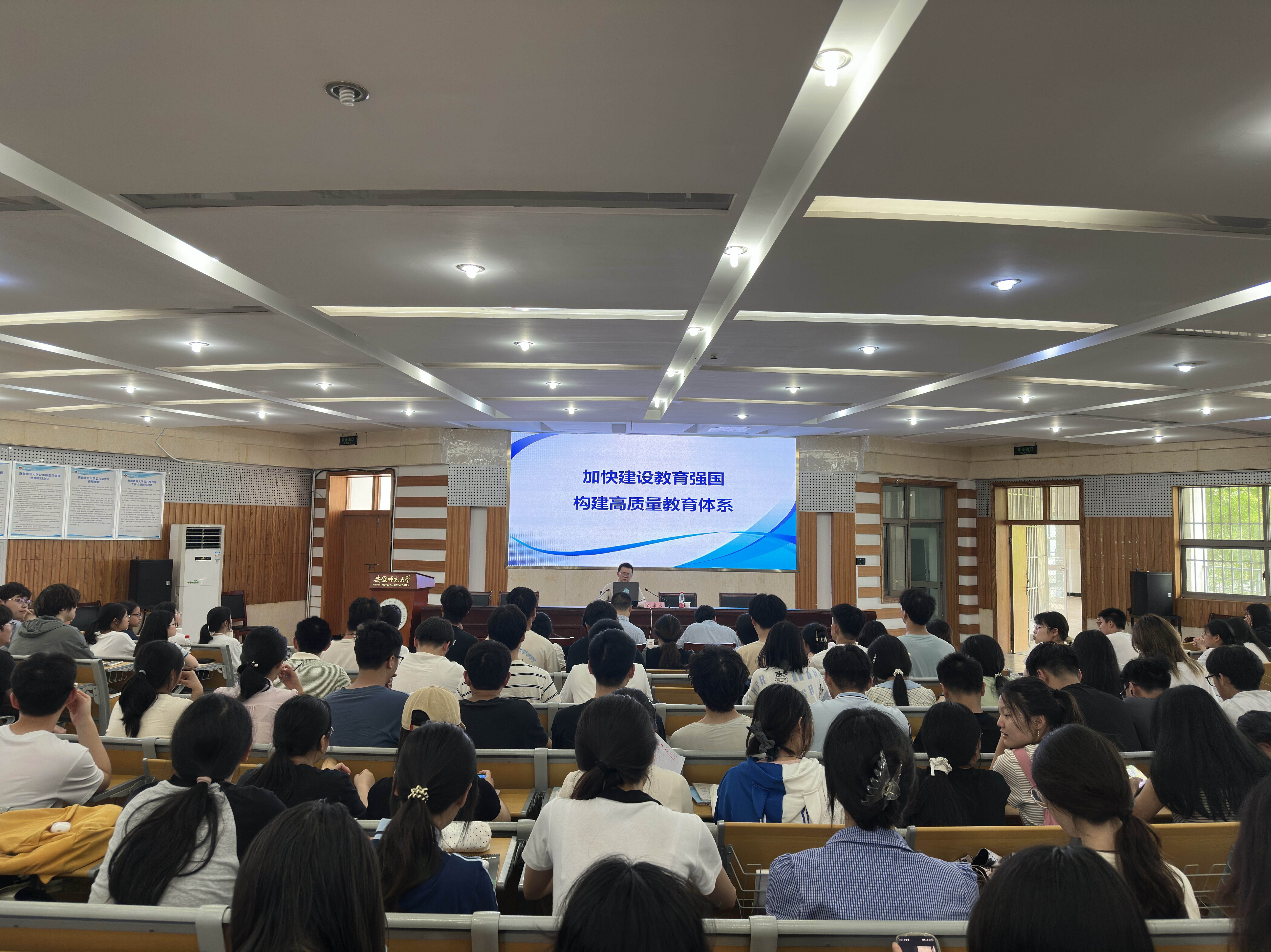熊宇杰围绕《加快建设教育强国,构建高质量教育体系》主题,详细解读了《教育强国建设规划纲要(2024-2035年)》,阐述了教育强国的六大特质,系统回顾了我国教育事业在基础教育普及、高等教育腾飞、职业教育革新等领域取得的辉煌成就。他指出,建设教育强国是全面建成社会主义现代化强国的战略先导,是实现高水平科技自立自强的重要支撑,是促进全体人民共同富裕的有效途径。广大师生要以习近平新时代中国特色社会主义思想为指引,强化责任担当、立足教育报国,踔厉奋发、笃行不怠,在加快建设教育强国的征程中贡献智慧和力量。