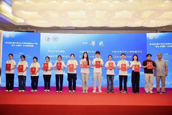 便予以高度重视并进行精心组织,针对项目选拔、论文撰写、项目演示以及现场答辩等各个环节开展多次演练。指导教师与学生团队秉持不懈努力、精益求精的态度,历经多次学院预赛以及最终决赛,遴选出四支队伍参与初赛。初赛由赛区外专家评委对参赛实验论文及视频进行函评,筛选出109支队伍进入复赛,进行现场答辩。最终,我校两支参赛队伍通过初赛,前往合肥参加华中赛区复赛。在复赛中,同学们敢打敢拼,经过汇报演示和现场答辩等激烈角逐,由王伟智老师指导的任梦杰、武奇妙、郑红玲同学的作品《对映异构体—分子世界的双胞胎》在科普实验赛道荣获一等奖;周映华老师指导的徐肖宇、孔婧雅、刘天宇同学的作品《MOFs固体酸催化酯化反应》在改进实验赛道荣获三等奖。此外,由凌平华、杨洋老师指导的吴思臻、郑现扩、洪叶同学的作品《食品中脱氢乙酸钠的比色法检测》在新创实验赛道也荣获了三等奖。