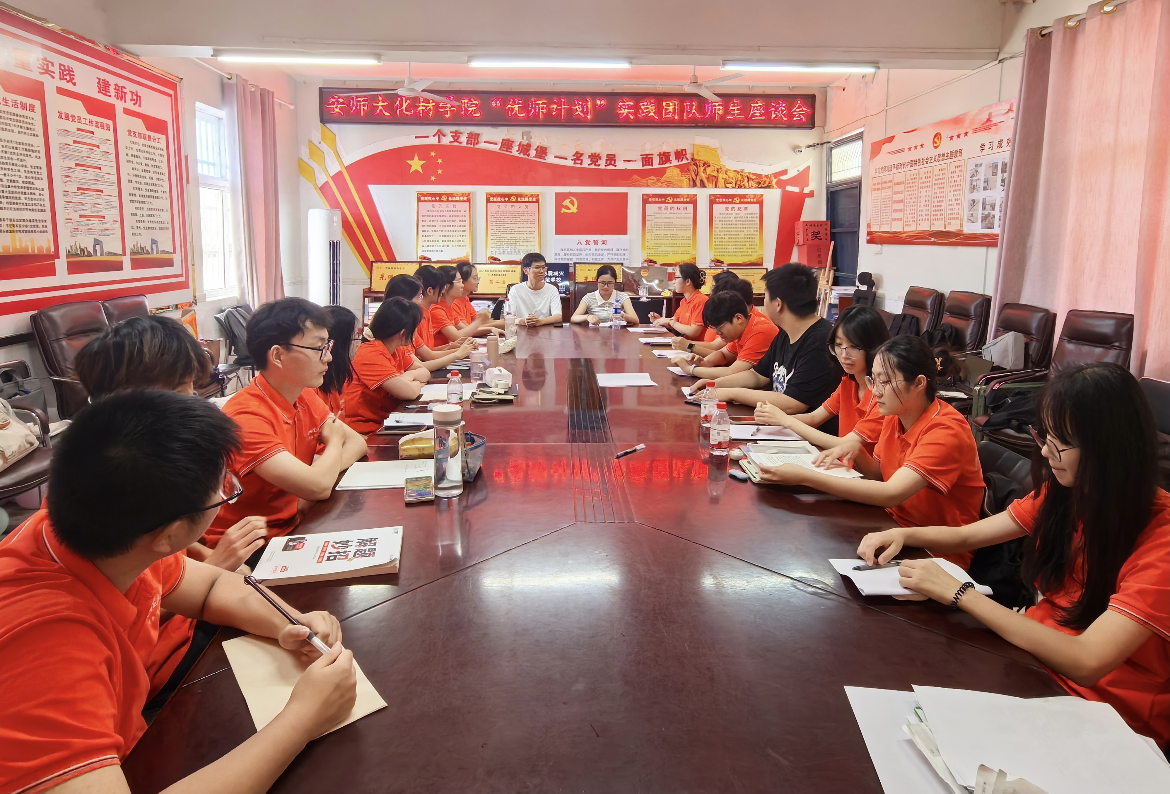 党委书记梁齐军、党委副书记李古州、社会实践指导教师孔婷婷、王辉、梅冠东一行赴宁国万家乡慰问暑期社会实践师生。在万家乡政府,梁齐军一行参加“化”雨润芽,“材”风为蕾爱心支教团队慰问座谈会。万家乡人民政府乡长张伟佳、党委副书记汪喆、党委委员殷明月、团委书记赵芳姣参加座谈会。梁齐军与张伟佳共同为包子漫画