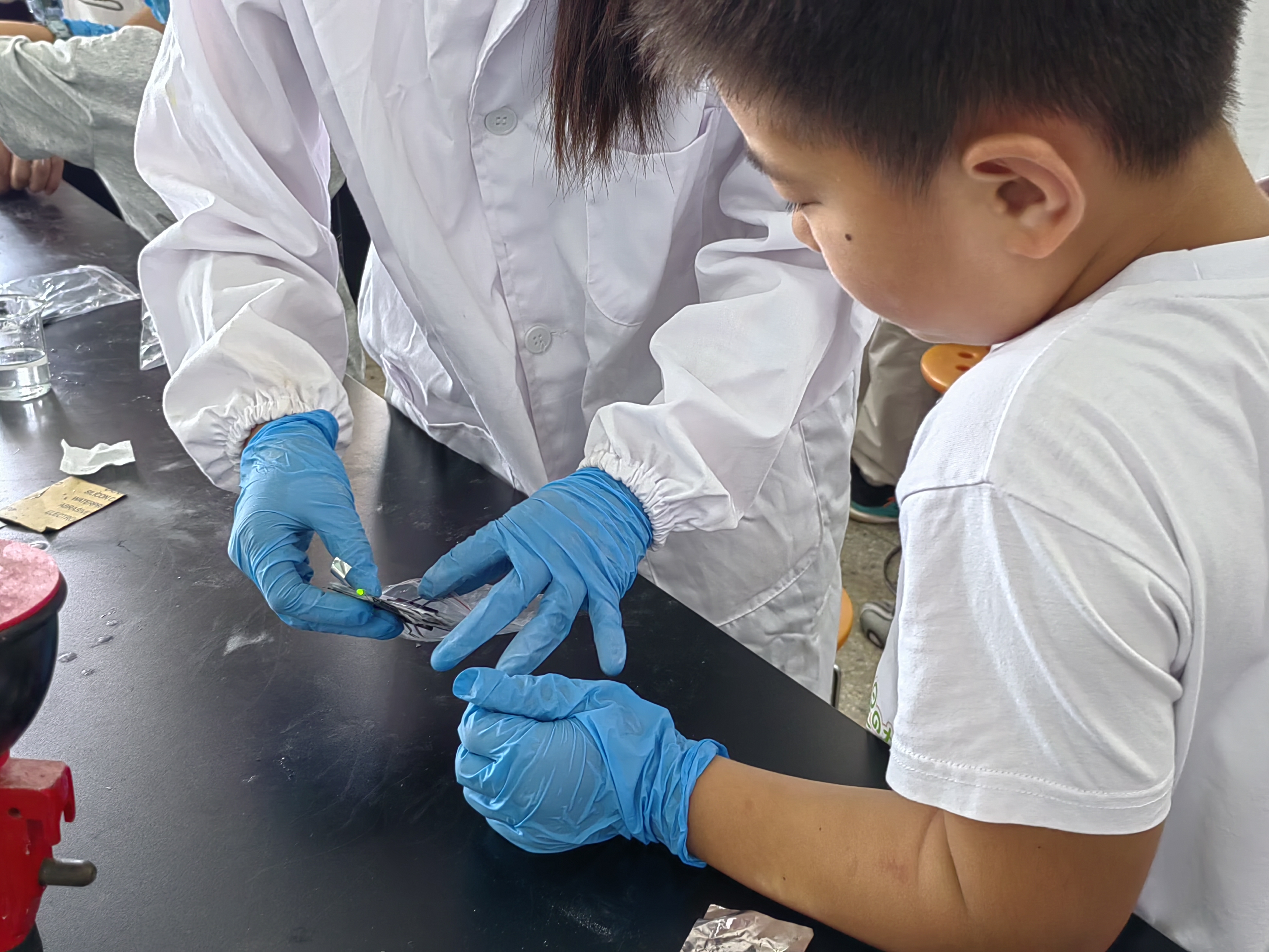 9 月 6 日上午,孩子们共同体验 “纸上发电”“制作水果电池” 等趣味操作:用“纸张”合成电池、用导线连接水果,当发光二极管成功亮起时,孩子们的欢呼声充盈实验室。相较于传统实验依赖感官与简单仪器的局限,此次活动通过趣味场景与产品制作,让基础教育领域学生打破对化学的陌生感,在动手间感受科技与生活的紧密联系。