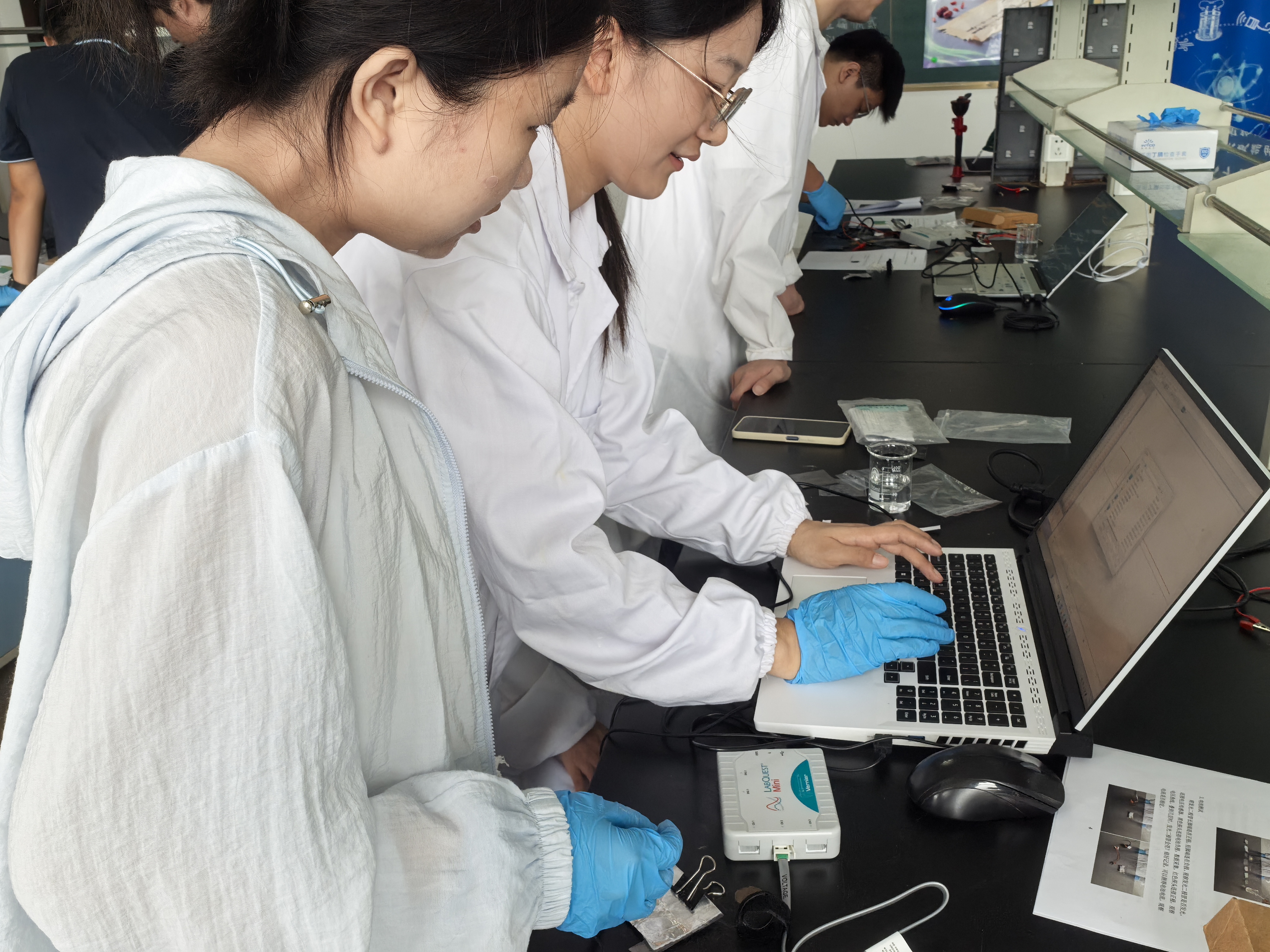 9 月 7 日上午,面向生物、化学、物理三个专业的大学生,活动更注重学科深度,参与者借助电压、电流传感器,实时采集纸电池、水果电池的实验数据,数据经专业软件生成动态曲线,将 “看不见” 的电流电压变化过程清晰具象化。