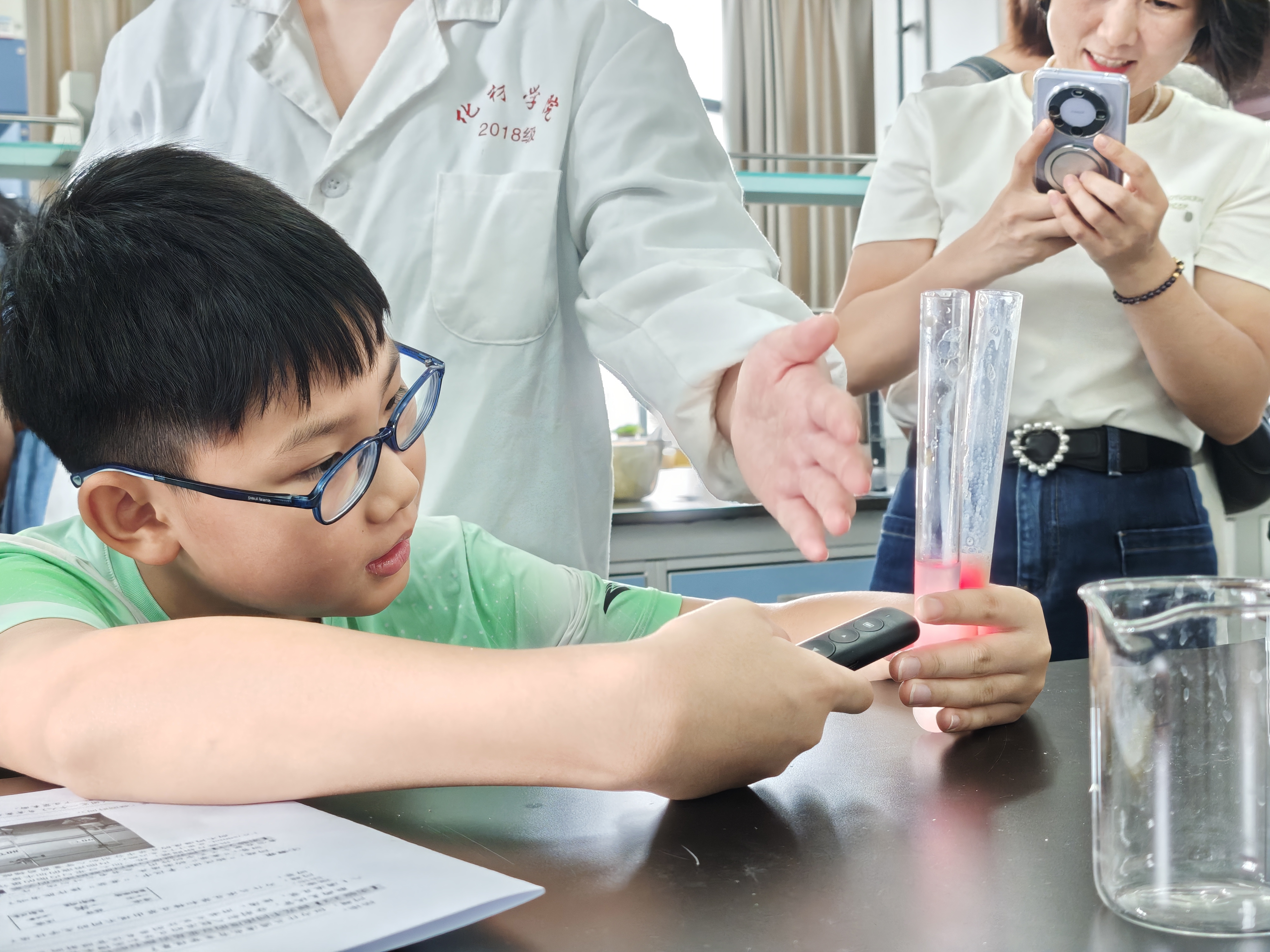 此次活动以“实践 + 探究”创新模式推出“基于非遗文化传承的科普实验互动体验”与“基于数智技术赋能的化学数字化实验”两大主题内容。活动中,非遗文化底蕴与现代科技活力同频共振,引导不同阶段师生在动手操作与深度思考中直观感受科普价值,为公众科学素养提升注入师大力量。