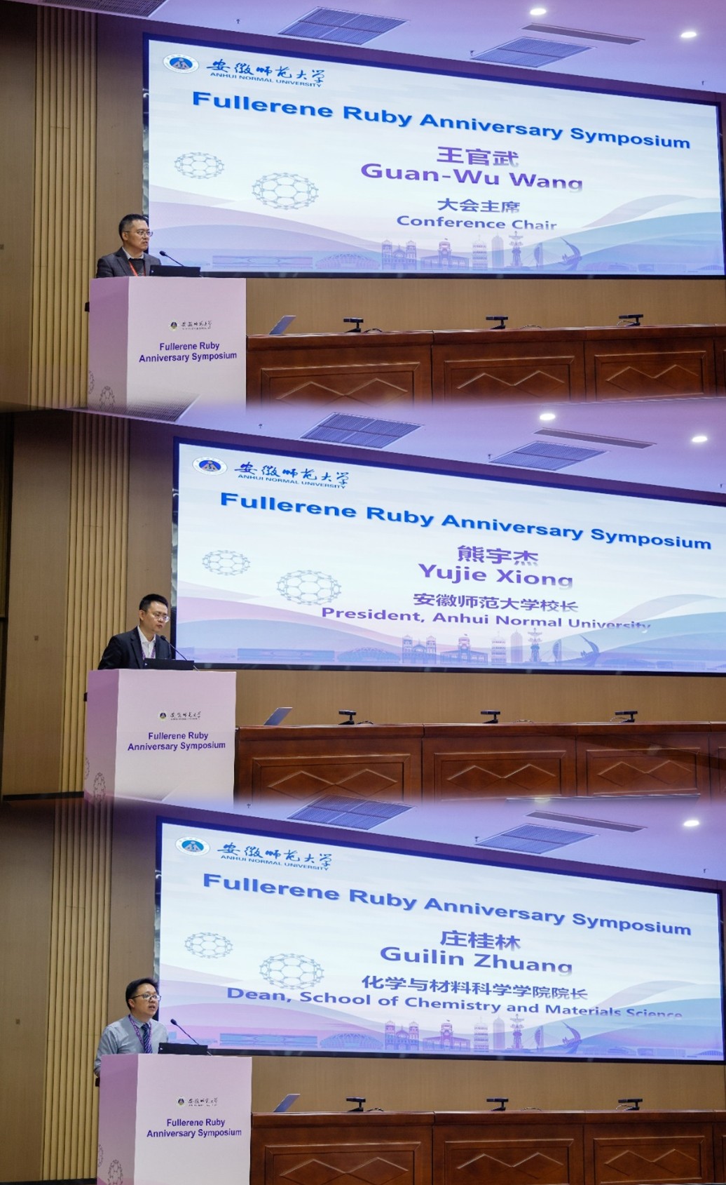 李昌治教授、朱彦武教授、谌宁教授、郑健研究员、姚明光教授、彭汝芳教授、徐海教授、谭元植教授、李芳芳教授、鲍立飘教授、王太山教授、田成波教授、李阔研究员、卫涛教授、张前炎教授、冯莱教授分别做了主旨报告。之外,会议也为大批中青年学者提供了展示自己研究成果的平台。本次研讨会精彩纷呈,为参会者带来了一场丰富的学术盛宴,激发了与会师生们的热烈讨论,促进了富勒烯领域的学术交流与合作,进一步推动了相关学科发展。