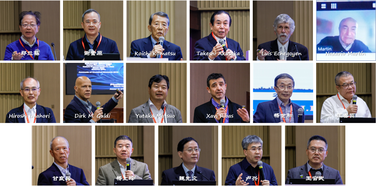 11月15日上午至11月17日上午,大会围绕富勒烯的发现、合成以及应用等领域开展了深度交流探讨。本次大会共设置了17场大会报告、16场主旨报告、21场邀请报告。郑兰荪院士、谢素原院士、Koichi Komatsu教授、Takeshi Akasaka教授、Luis Echegoyen教授、Nazario Martín教授、Hiroshi Imahori教授、Dirk M. Guldi教授、Yutaka Matsuo教授、Xavi Ribas教授、杨世和教授、王春儒研究员、甘良兵教授、杨上峰教授、卢兴教授、魏先文教授、王官武教授分别做了大会报告。郑兰荪院士特别就富勒烯的发现历程以及学科交叉在科学发展中的重要作用向与会者做了倾情分享和心得体会;谢素原院士介绍了富勒烯作为电子缓冲剂在铜促进的常压下选择性加氢制乙二醇方面的前沿研究工作。